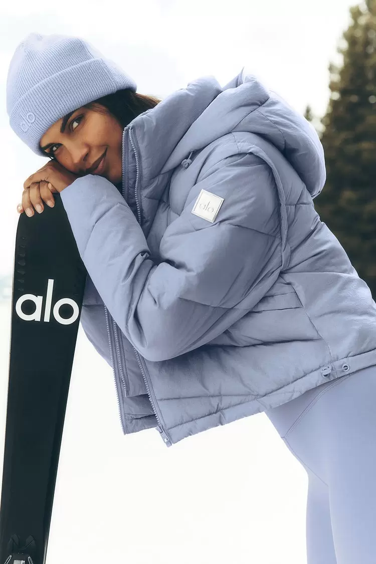 The Glacier Puffer has been engineered with Alo’s performance-first approach, ensuring breathability, lightweight insulation, and durability. The cropped design makes it ideal for pairing with high-waisted leggings, joggers, or ski-style outfits.