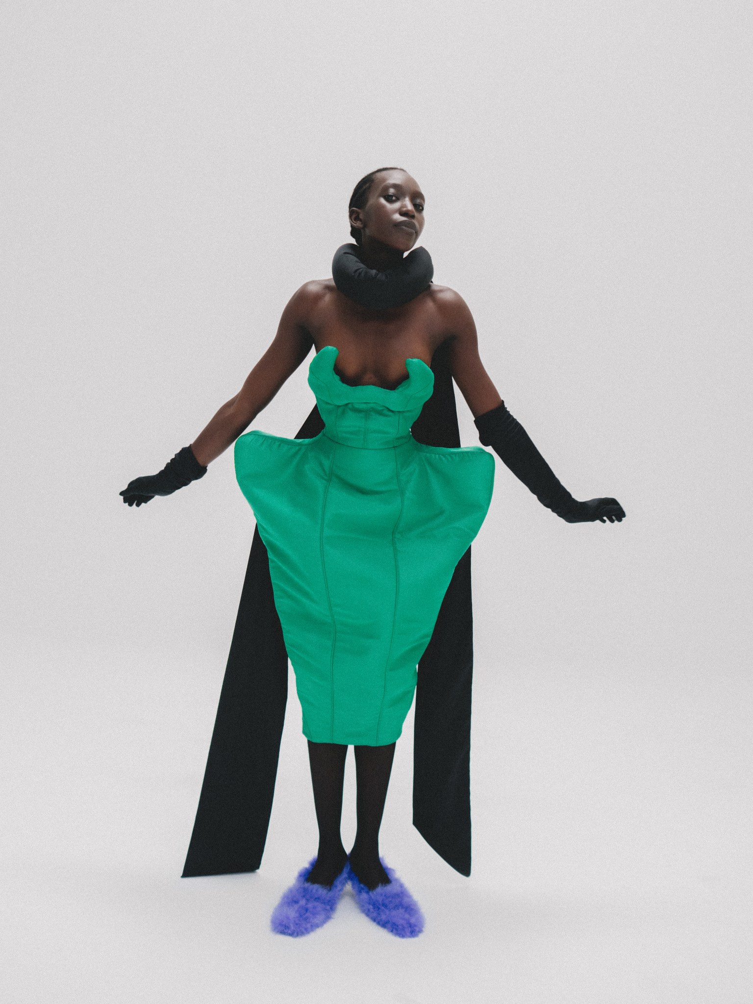 Lvaro has continued to evolve his hyperbolic style to a pure form where nothing feels empty anymore, from the printed recycled leather to the colour.
