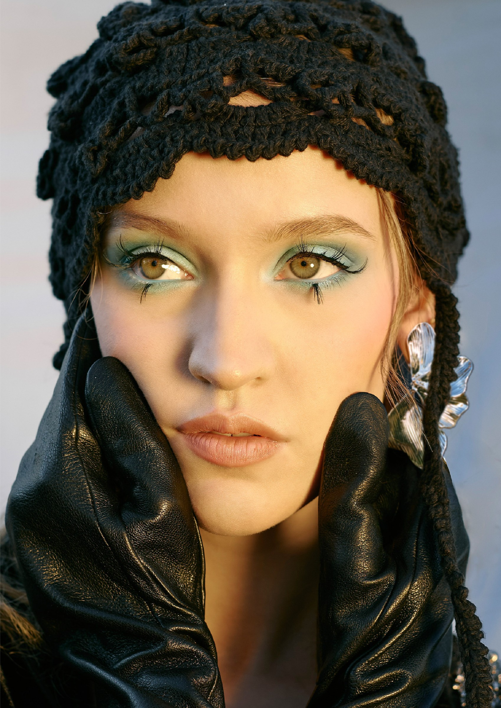 Wardrobe credits: Look 1: Black bodysuit: vintage, Bonnet: made in Mexico, Tights: Calzedonia, Leather gloves: made in Italy, Jewelry: Stylist’s own, Shoes: Steve Madden // Look 2: Bodysuit: Zara, Tights: Calzedonia, Faux-fur: made in France, Shoes: Tabi, Jewelry: Stylist’s own // Look 3: Lilac dress: H&M, Sweater: Cristopher&Banks, Tights: Calzedonia, Jewelry: Stylist’s own, Shoes: Vicenza // Look 4: Bodysuit: Zara, Jewelry: Stylist’s own // Look 5: Lace blouse: H&M, Faux‑fur hat: Stylist’s own, White corset: made in Italy, Tights: Calzedonia. Jewelry: Stylist’s own, Shoes: Steve Madden // Look 6: Wool blazer: Humana, Bodysuit: H&M. White corset: Kurōzetto, Tights: Calzedonia, Shoes: Zara, Hat: made in Guadalajara Mexico, Scarf: made in Italy // Look 7: Suede Vest: Á Forma, Stripe overall: Kurōzetto, Boots: Zara, Jewelry: Stylist’s own, Hat: made in Guadalajara Mexico