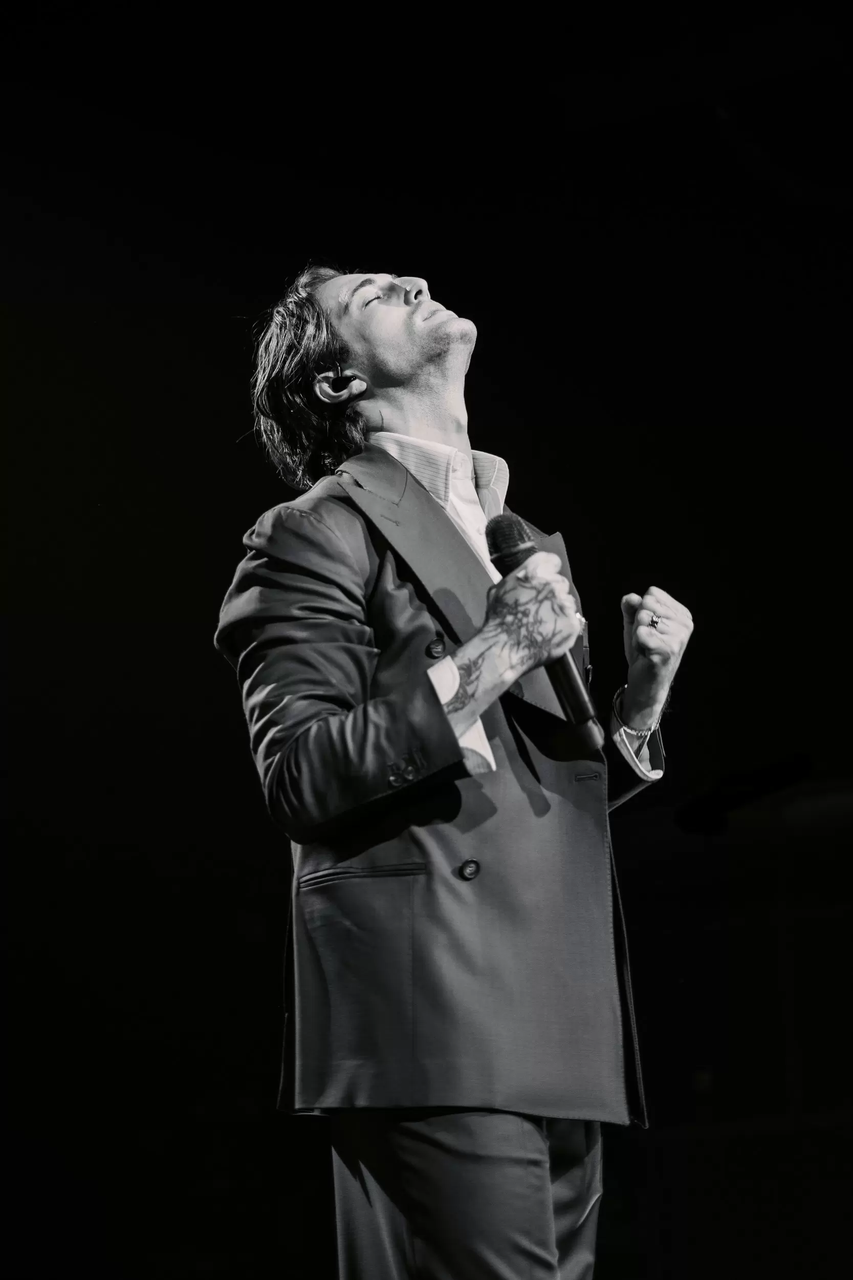 Upon popular request, David shifted gears with a cover of “Sex on Fire” by Kings of Leon, offering the Montreal audience a tantalizing glimpse into yet another facet of his vocal range, a new angle of David that they had the pleasure of encountering. The crowd erupted in cheers. As the first act unfolded, he peeled off his jacket, revealing bare skin in a gesture that felt deliberate, as an expression of vulnerability that illuminated the layers beneath his stage persona and allowed the audience a glimpse of the artist behind the performance.