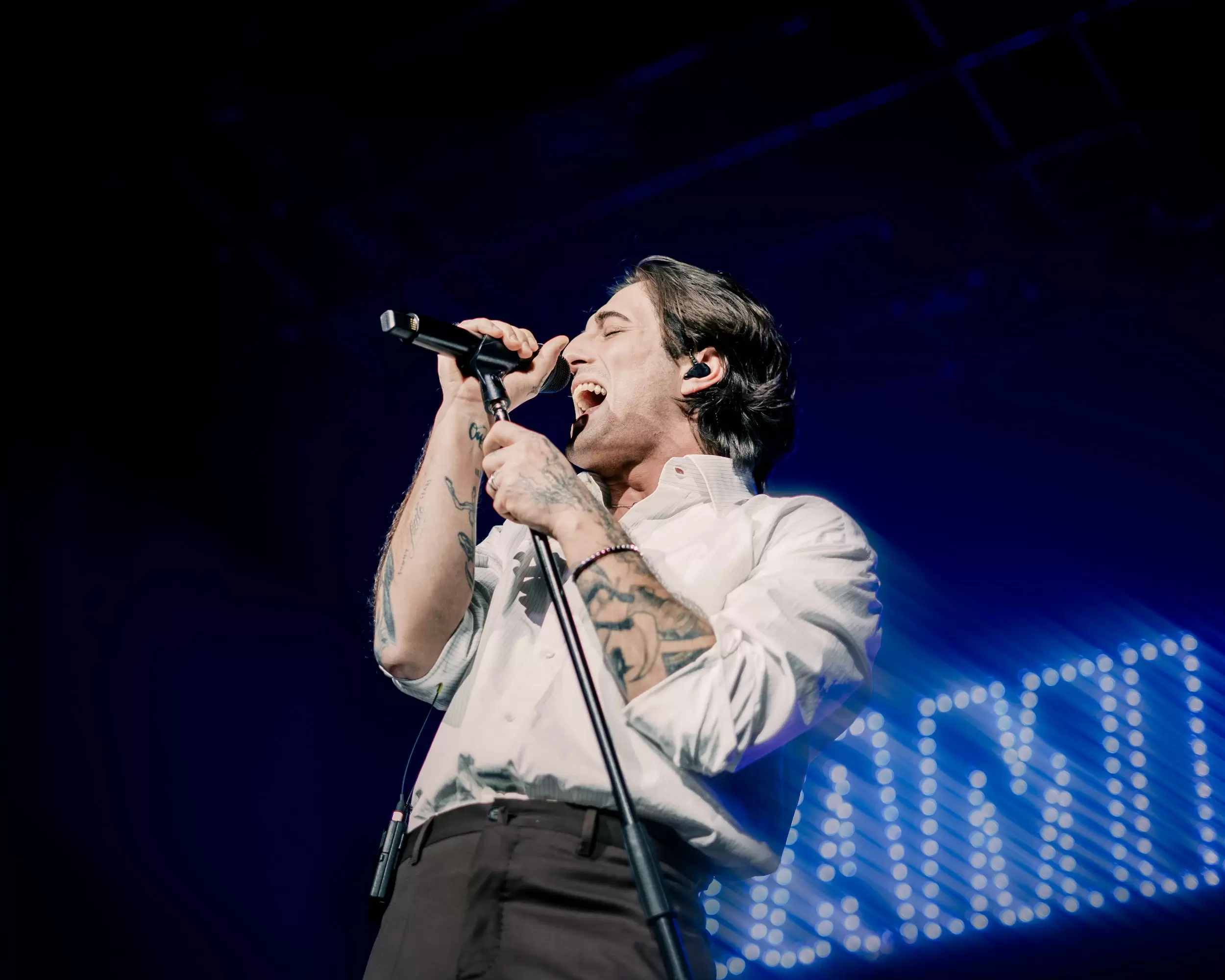 He closed the first act by explaining that the show was structured in three distinct parts, each representing a different chapter of his life. The opening act reflected the past ten years, a period defined by Måneskin’s meteoric rise, nonstop touring, and constant creation, a dream realized almost overnight. Yet, amid the acclaim and the whirlwind of travel, David vulnerably revealed that the thrill of success came paired with a dissonance he couldn’t ignore. The joy of performing and exploring the world began to fade, replaced by the pressure of living a dream that was never fully his own. This reckoning gave birth to his solo record, a space where he could confront the emptiness beneath the surface of fame. Through the song “Perfect Life,” he translated that feeling of being trapped in someone else’s narrative, inviting the audience to witness and share his intimate revelation.