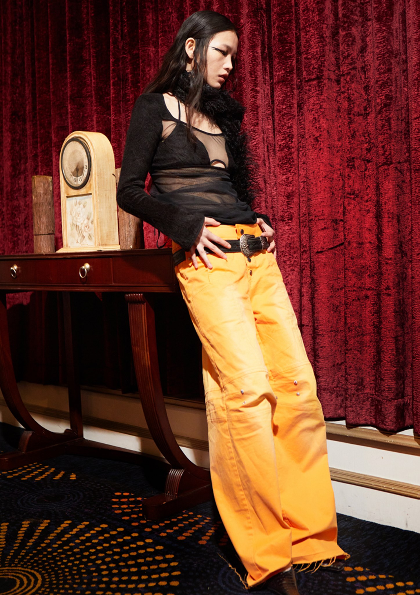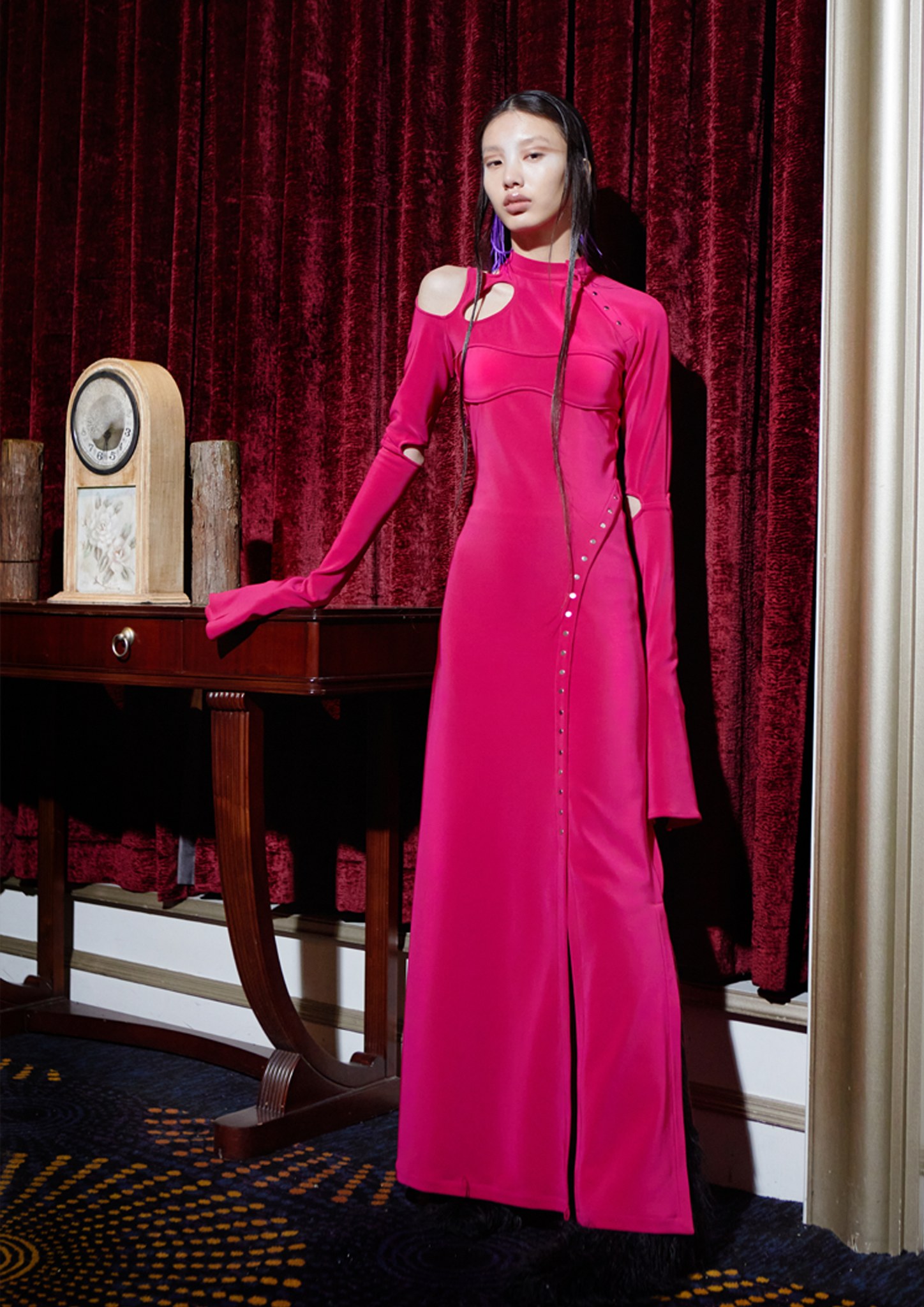 This season, dramatic and contrasting colour, texture and textiles cooperate and compete, embodying the pressure and relief of the protagonist’s journey inwards. Sensitive balancing of these aspects of design creates an innate energy and momentum within each piece, right at the threshold of tension and harmony. Fluid and dynamic, it is at once familiar to what has come before, but fresh and forward-looking; comforting but confronting; soft but strong; feminine but with force; confident, seductive, neoteric – sublime.