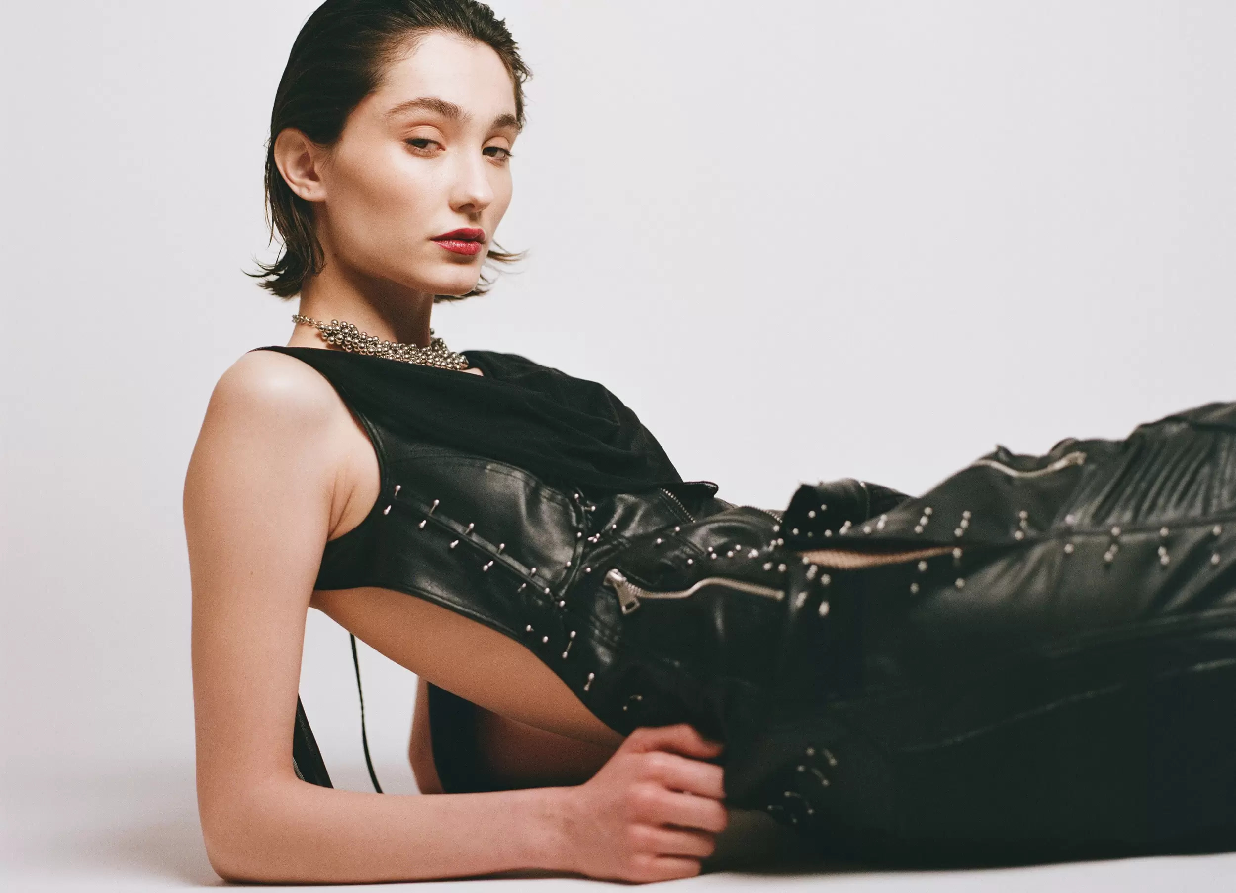 Leather Glove & Other Stories, Skirt Joseph, Earrings Giovanni Raspini // Look 3: Body Stylist own, Tights Calzedonia // Look 4: Top Dion Lee, Skirt Acne Studio, Tights Calzedonia, Vintage necklace, Shoes COS