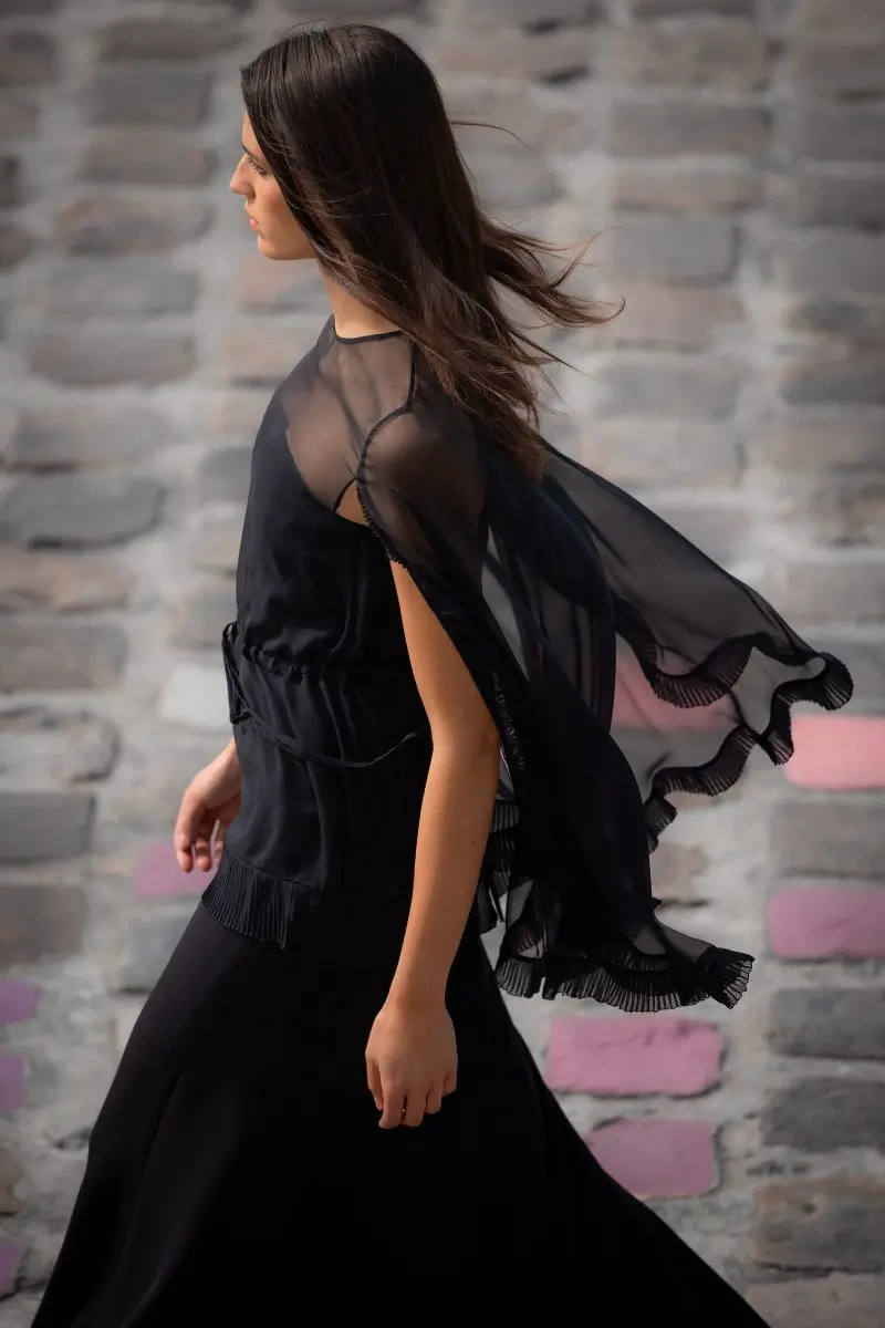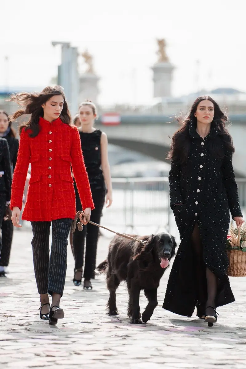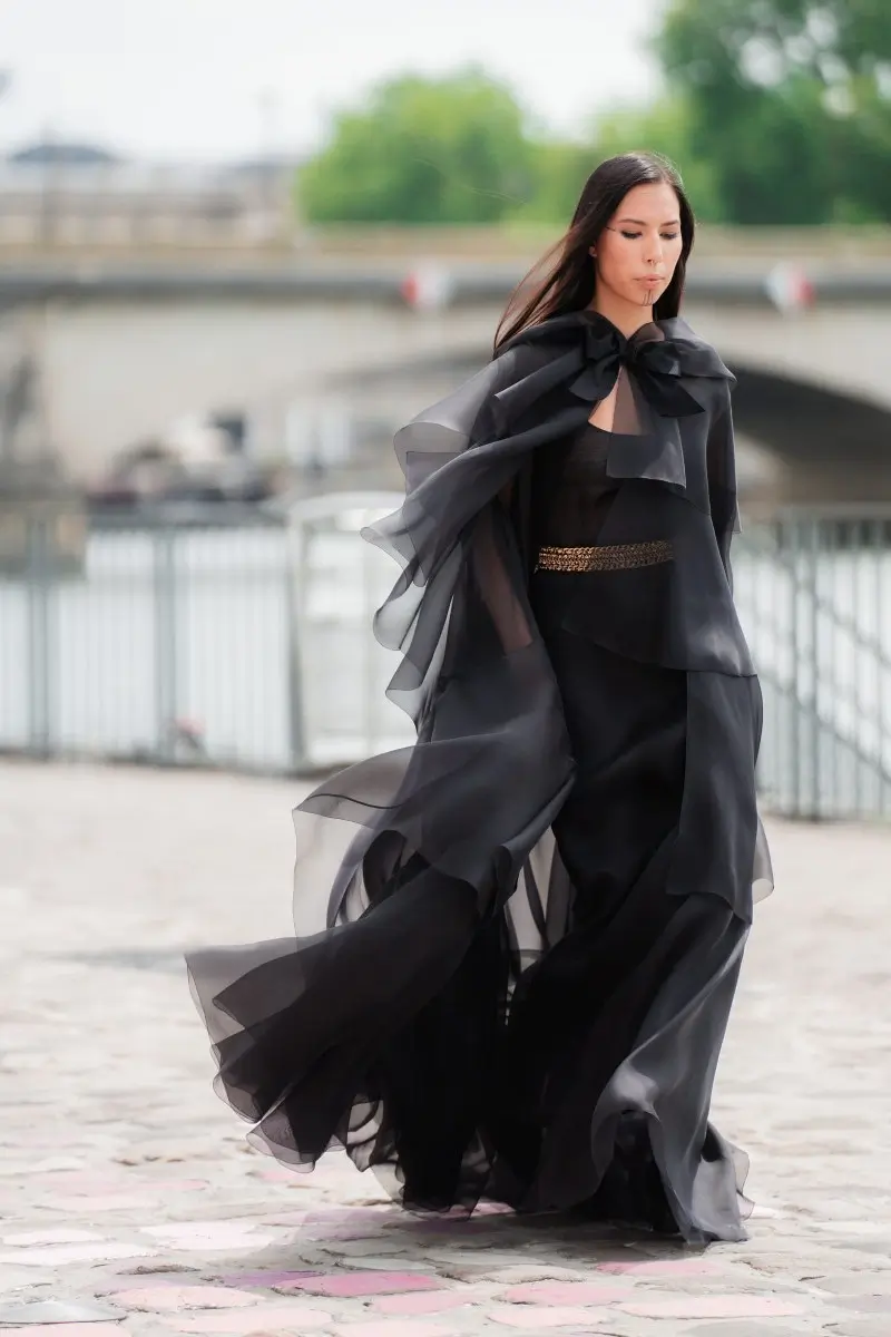 Chanel’s Fall-Winter 2023/24 Haute Couture collection, masterminded by Virginie Viard, presents an evocative symphony of contrasts and balance, encapsulating the spirit of a bold yet sensitive Parisienne. The collection introduces a daring blend of time-honored traditions and daring innovation, echoing the designer’s belief in navigating the intriguing line between strength and delicacy. The collection is set against the ethereal backdrop of Paris, presented on the vibrant quayside and personified by the charismatic Vanessa Paradis, the CHANEL ambassador. Exuding an allure of sophistication and nonchalance, Paradis dons an elegant organza dress adorned with black velvet camellias, and a two-tone wool crêpe dress, among other intricate ensembles that epitomize the versatile charm of the Parisienne.