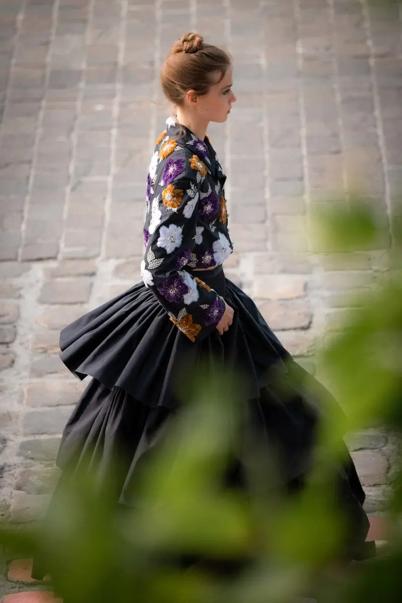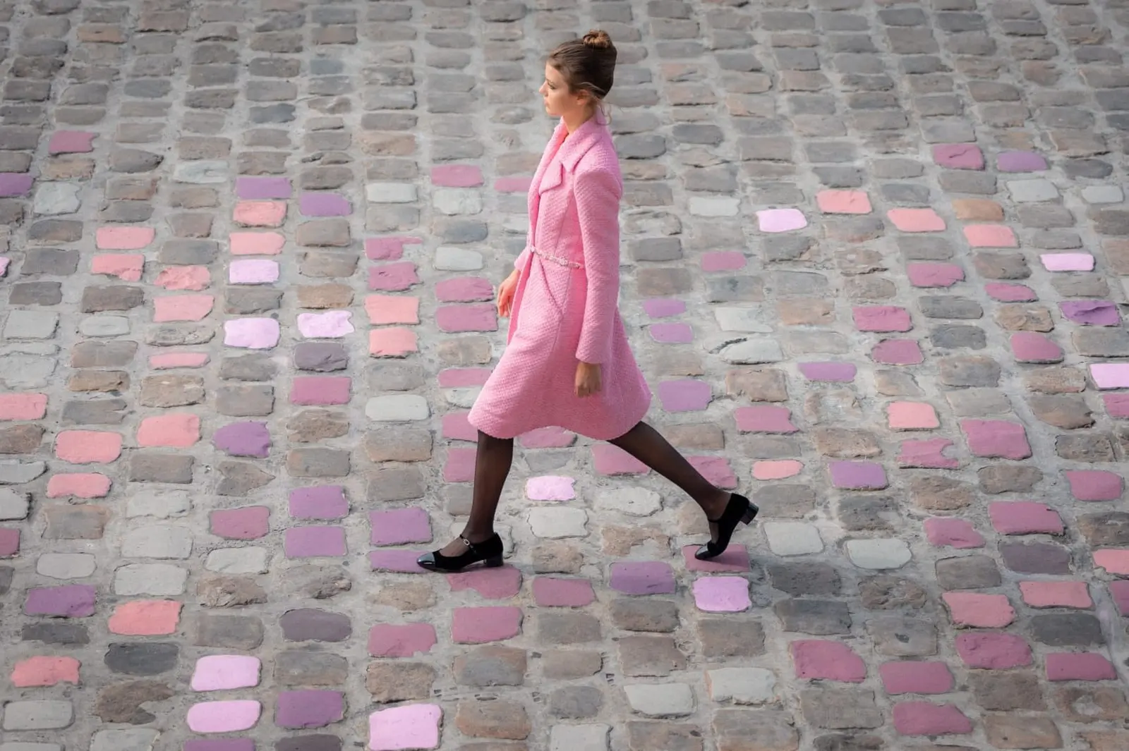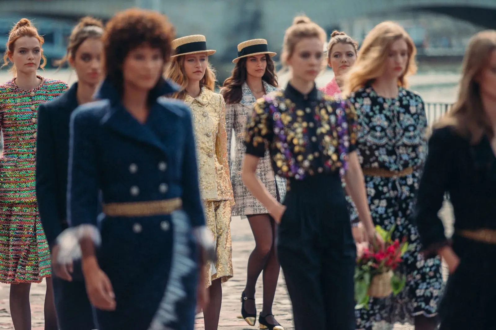 Reflecting a rich and feminine creative universe, the collection is a cornucopia of texture and silhouette, playing with tweeds, silk chiffons, organza and inlaid lace, along with a blend of floral and graphic motifs. The collection’s street style, inspired by the colorful Parisian cobblestones, marries sophistication with simplicity, featuring masculine-inspired overcoats, diaphanous blouses, golden tweed skirts, and vibrant two-tone Mary-Janes. With this collection, Virginie Viard continues to redefine CHANEL’s codes through a unique blend of rigour and asymmetry, subtle hues and vibrant shades, confidence and discretion, all while celebrating the brand’s commitment to dream and inspire.