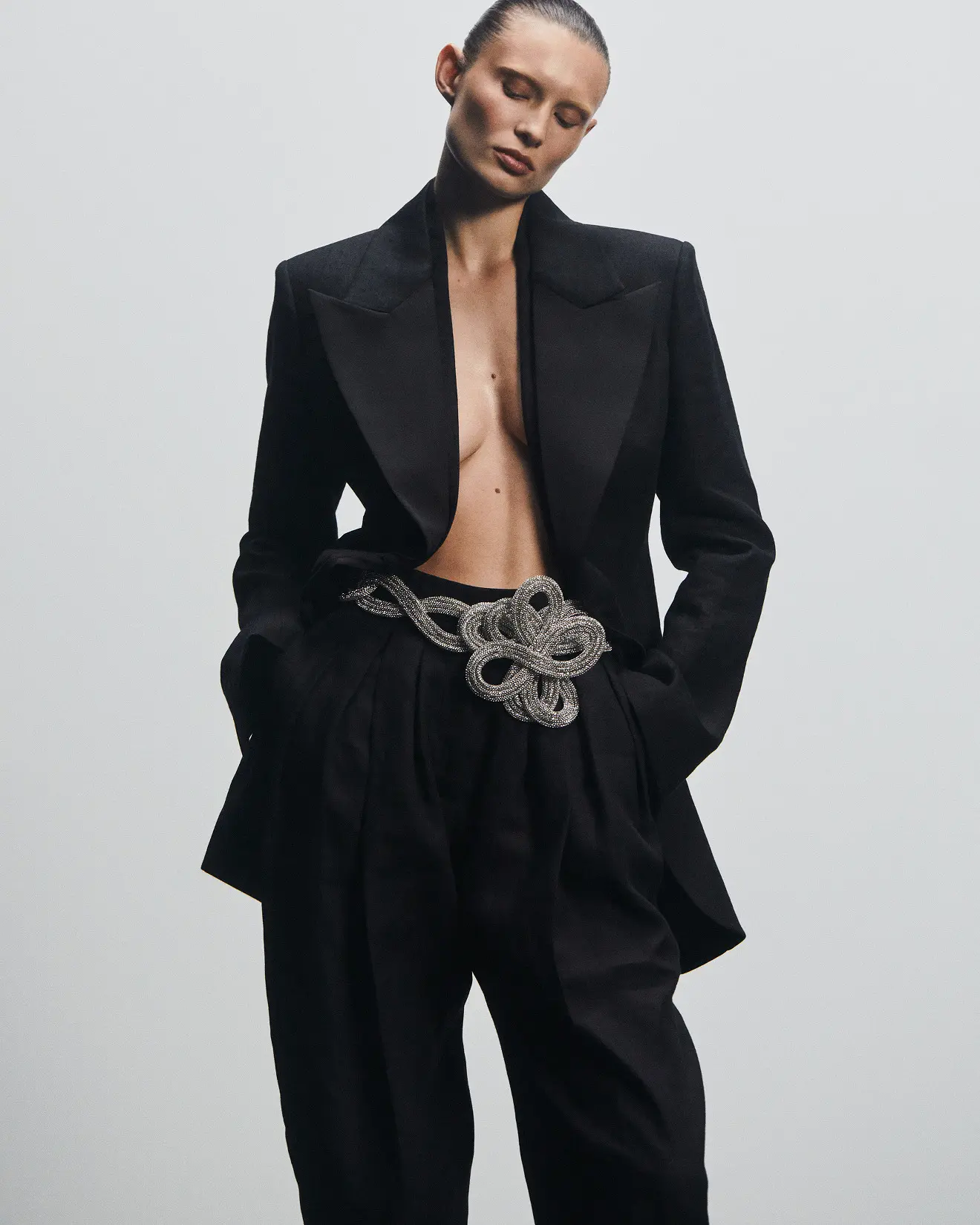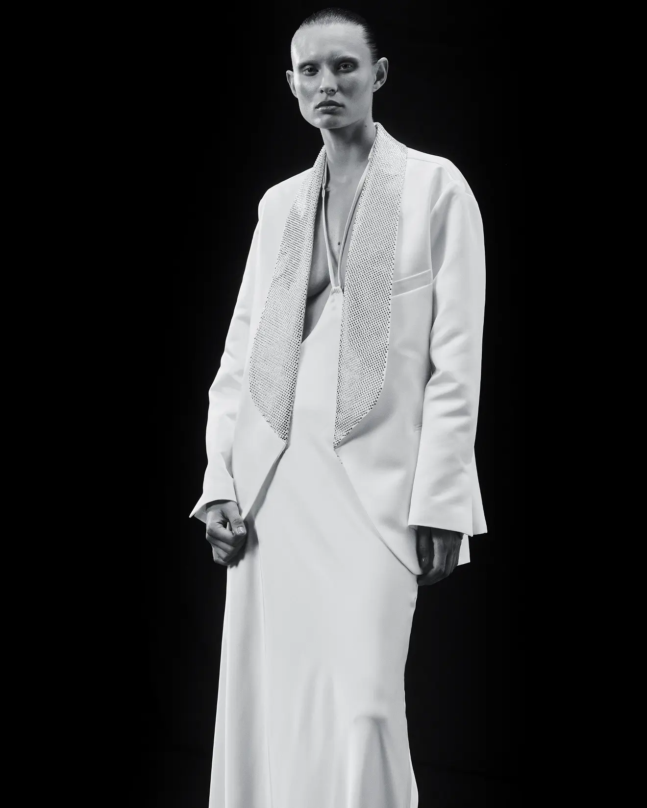 “The large part of the collection is based on black color which embodies the sad events taking place in Ukraine now but each of the black garments is complemented with a white sparkling detail – eventually GASANOVA remains a special occasionwear brand. In this way I’d like to show that even passing through the darkness we still move to our next big celebration – the celebration of freedom”, – the designer says.