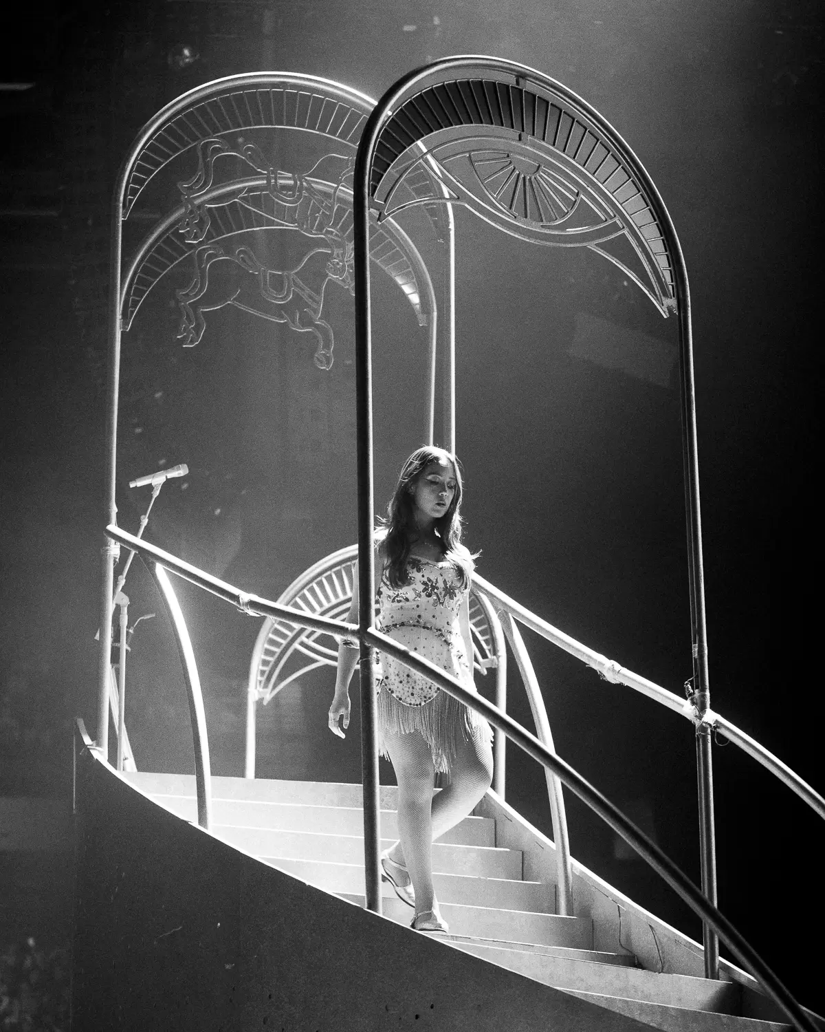 As the jazz set faded into memory, the stage was transformed into a whimsical carousel. With twirling horses and a soft, lullaby melody, Laufey guided the audience from her cozy cabaret to a carnival setting. Dancers spun umbrellas adorned with carousel horses, creating the illusion of motion as the music shifted into the quirky “Cuckoo Ballet,” a musical interlude that fused classical en pointe ballet and contemporary dance elements. Drawing inspiration from the London Royal Ballet’s production of Cinderella, she told The GRAMMYs, “This anxiety of running away, of the ticking of the clock, spoke to me and spoke to my personal feelings about falling in love. It felt like the perfect place to work from.”