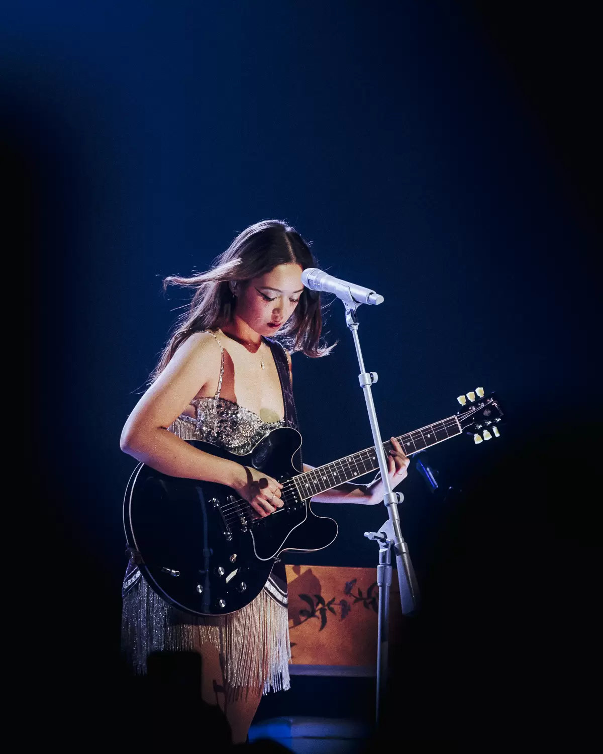 Transitioning seamlessly to the clockwork-inspired B-stage, Laufey arrived in a flapper-inspired fringe dress, accompanied by an upright piano, stand-up bass and drum set. The stage screen glowed in black and white, displaying heart-shaped martini glasses. “Welcome to my jazz club,” Laufey greeted the audience through her vintage ribbon microphone. Immersed in a bygone world of velvety melodies and swinging rhythms, she sings songs off her 2022 debut album, Everything I Know About Love, rendered in sepia tones, embellished with a newfound old-timey musicality. Inviting the audience into the realm of bossa nova and blues, Laufey jitterbuged with a jazz sensibility to improvisational flourishes on the piano. Covering fan favourites like “Valentine,” “Fragile,” and “While You Were Sleeping,” Laufey brought together an intimate throwback set as timely as it was timeless.