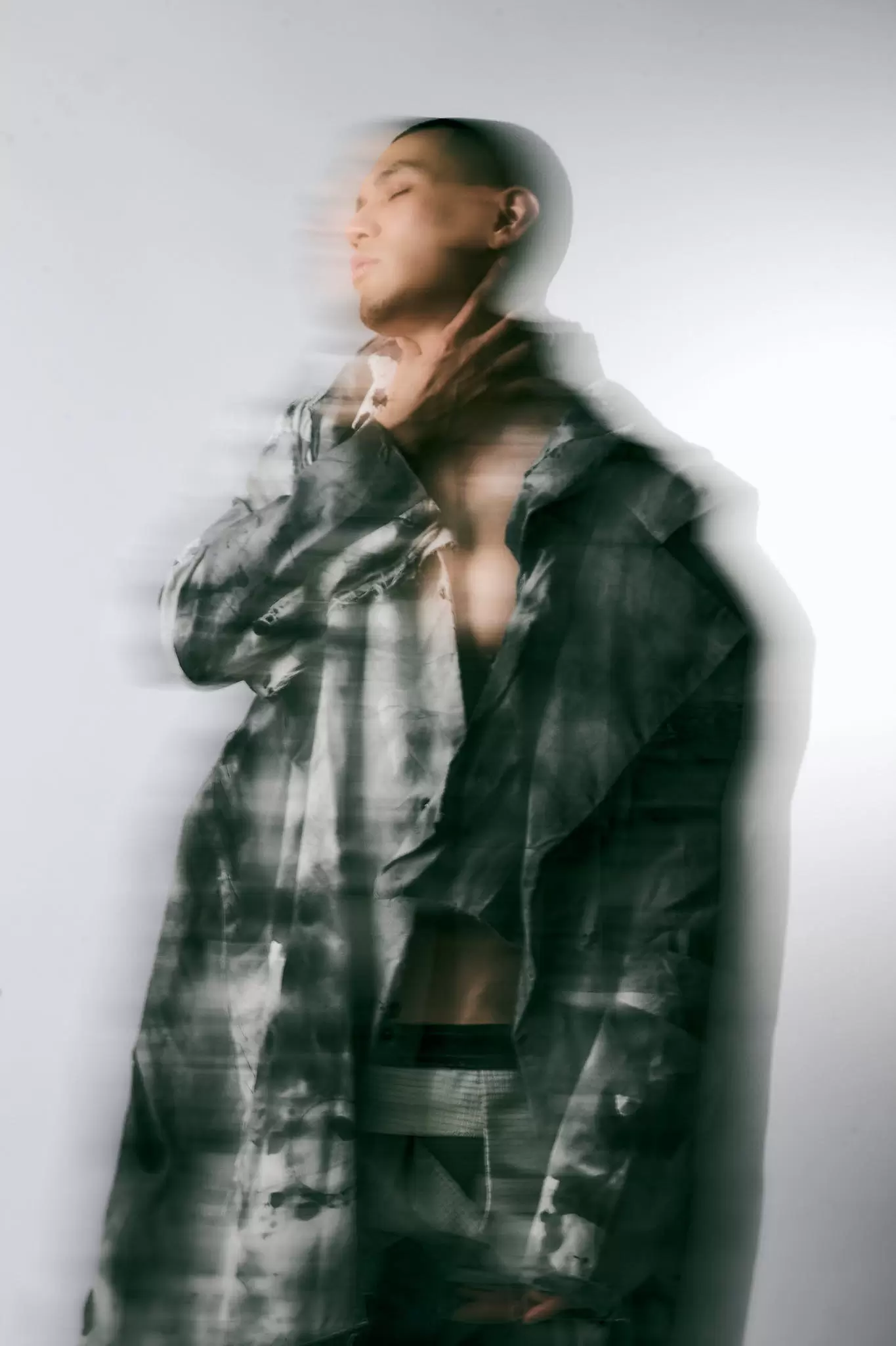 In the later looks, motion blurs and surfaces streak. The body becomes a record of passage rather than a fixed pose. “Recall” closes on that idea — preservation is not stasis. It is an active return.