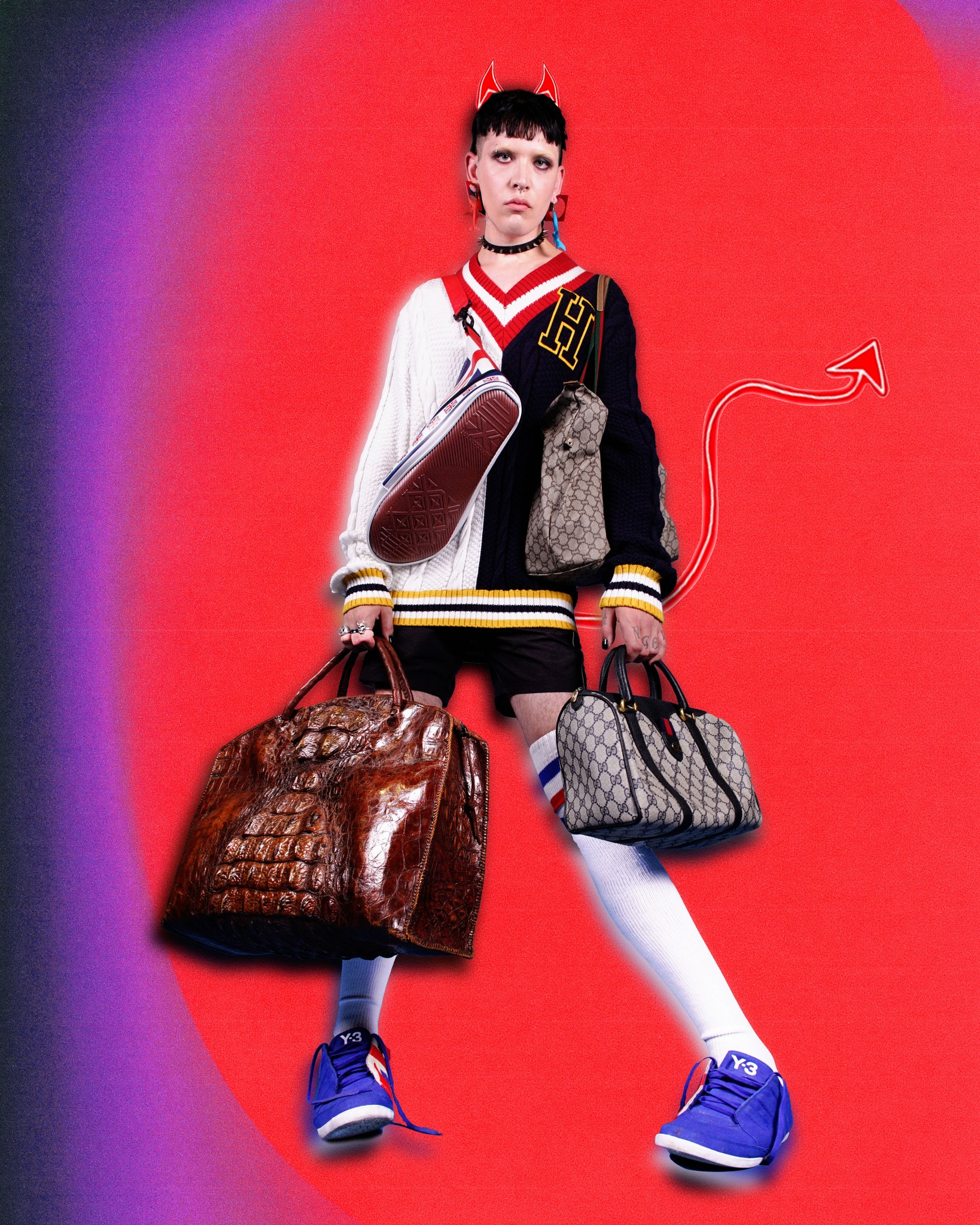 Wardrobe Credits : Y3 Shoes, Blue Jays top, unbranded vintage shorts, Black and white shirt/cardigan set Roberto Cavalli, Ader Error hat, Tabis Online Japan shoes, Chanel Sunglasses, Jean Paul Gaultier blazer, Stussy shirt, Tommy Hilfiger sweater, Ader Error x Puma shorts, American Apparel socks, Issey Miyake top, OHDD vintage skirt,