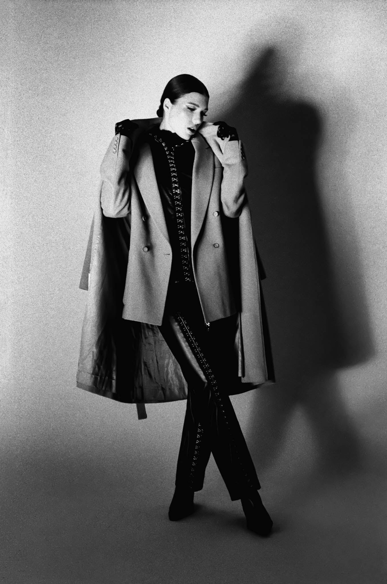 Leather & coat outfit: