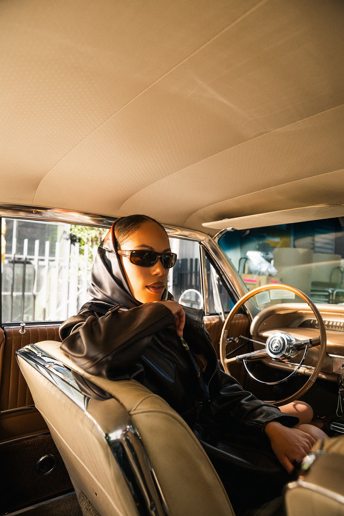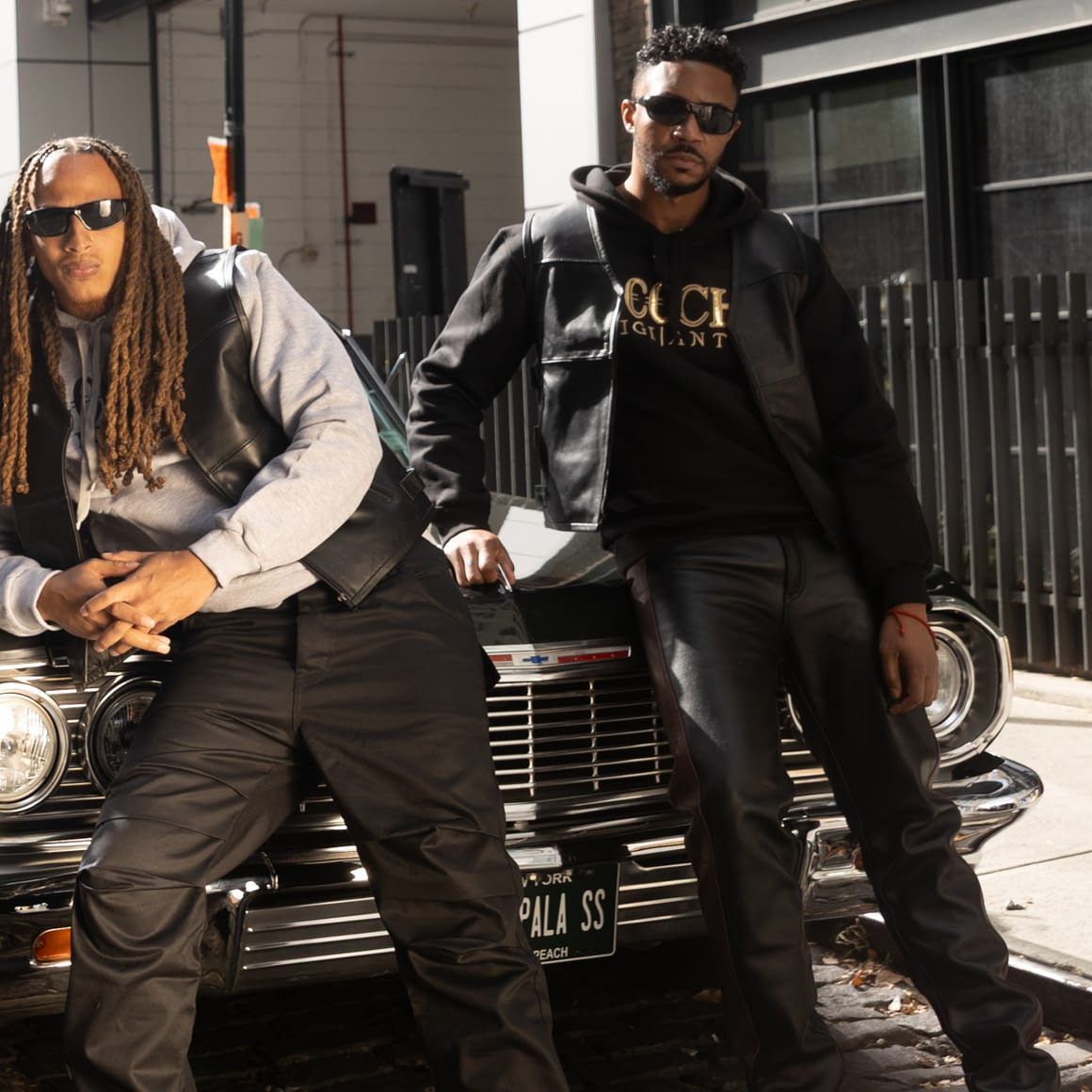 Wardrobe credits: Look 1 : GEECHI ® Women’s “Naqada” Brown Leather Trenchcoat, Mocha Suede Skirt, Top, SS Head Scarf, Briefcase Sample // Look 2: Triton Leather Jacket, Classic Blue Flat Cap, Prada Glasses, Flared Adj. Leather Pants // Look 3: Gray GV Fleece Hoodie, Black/Gold Fleece Hoodie, Men’s MC Leather Vest, Custom Glasses, Flared Men’s Riven Pants, Leather Straight Leg Pants