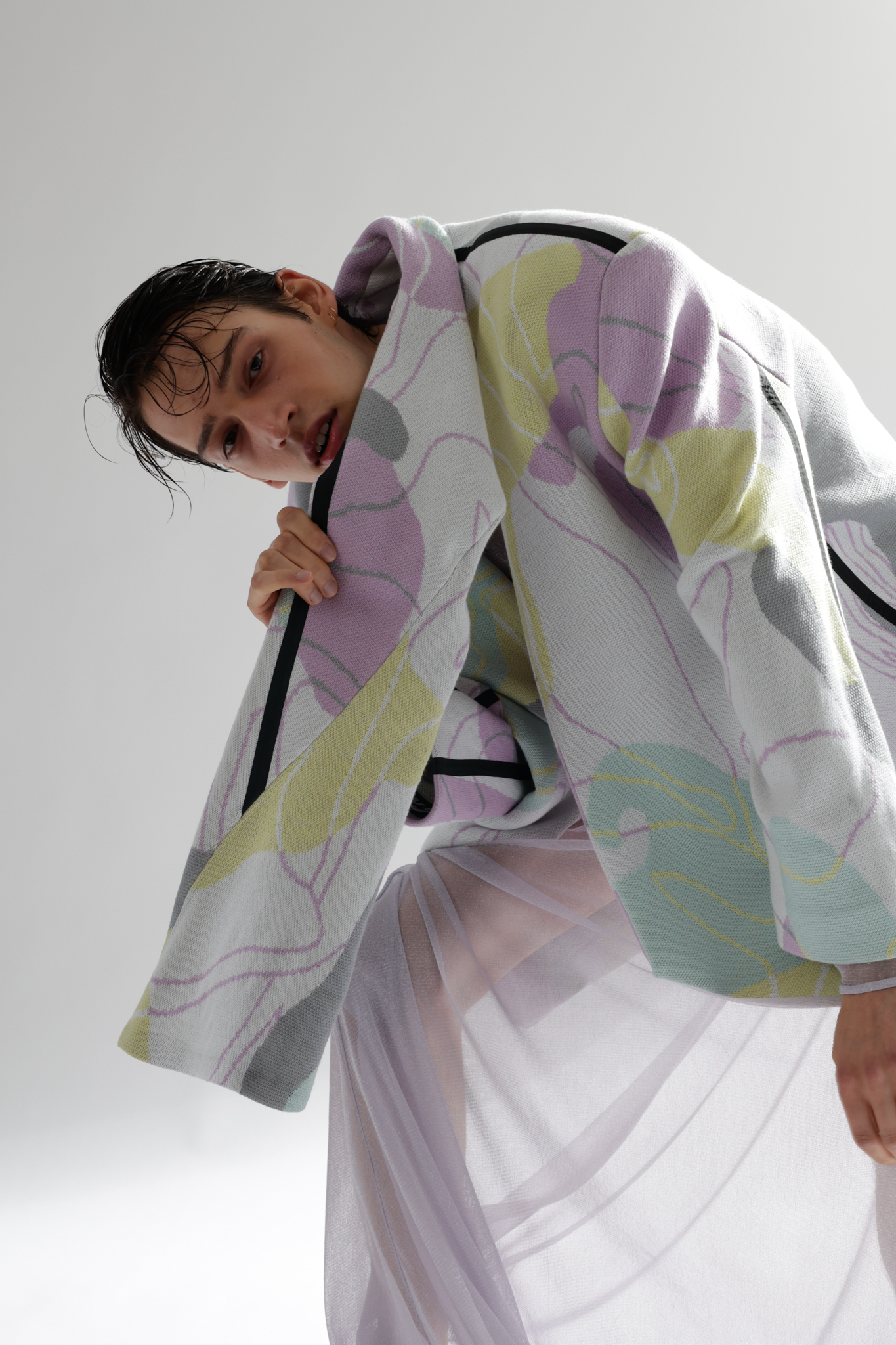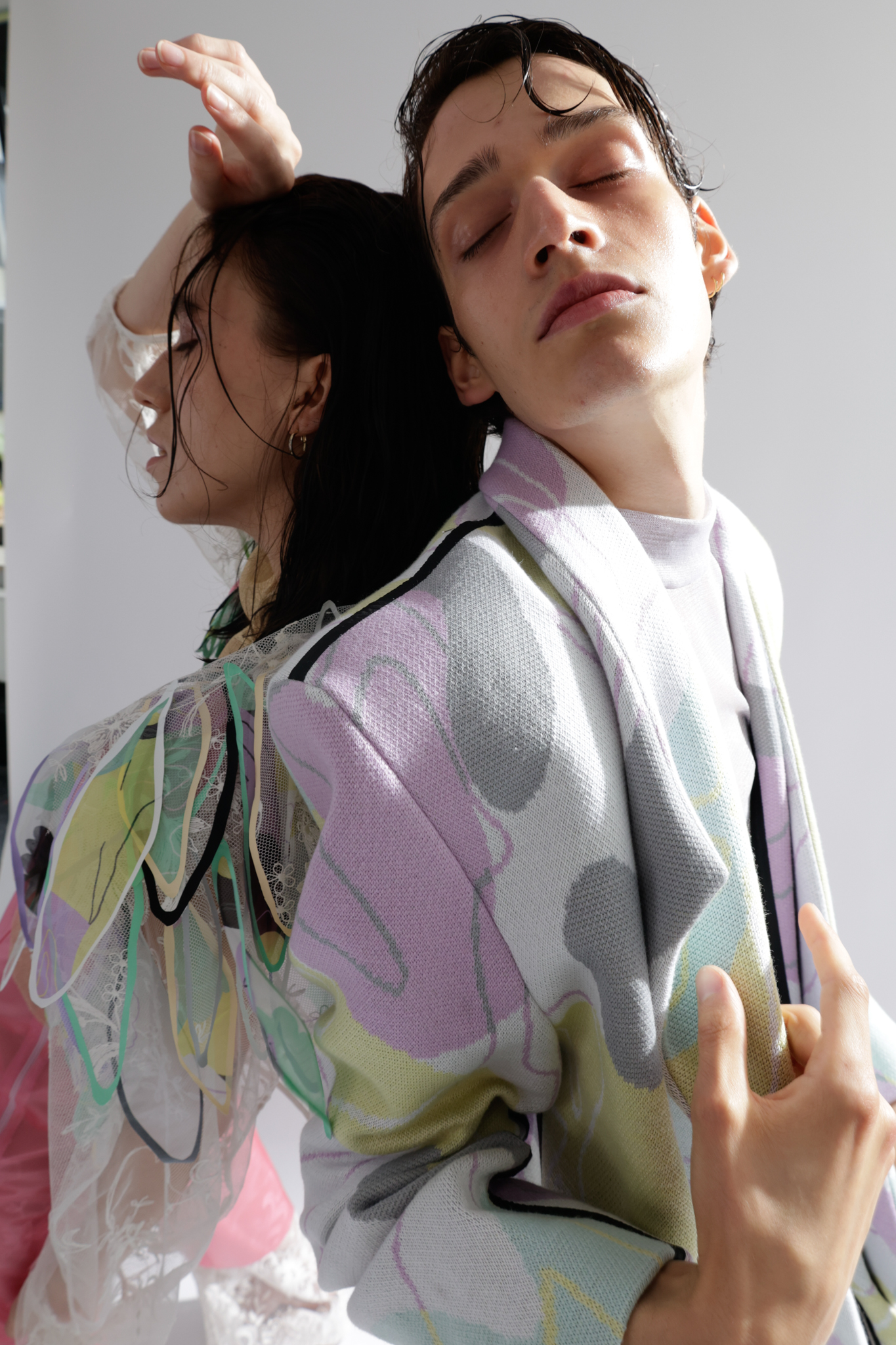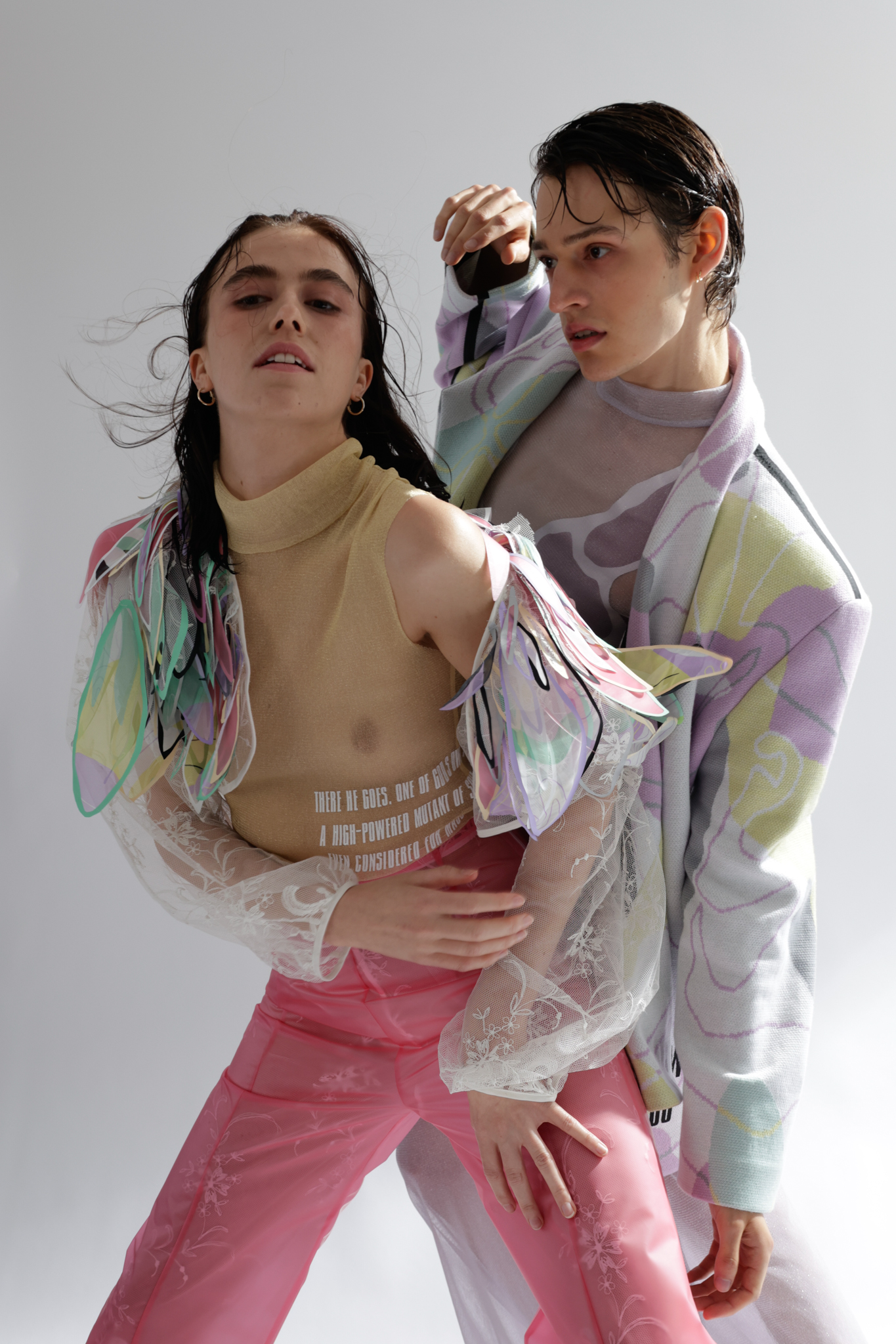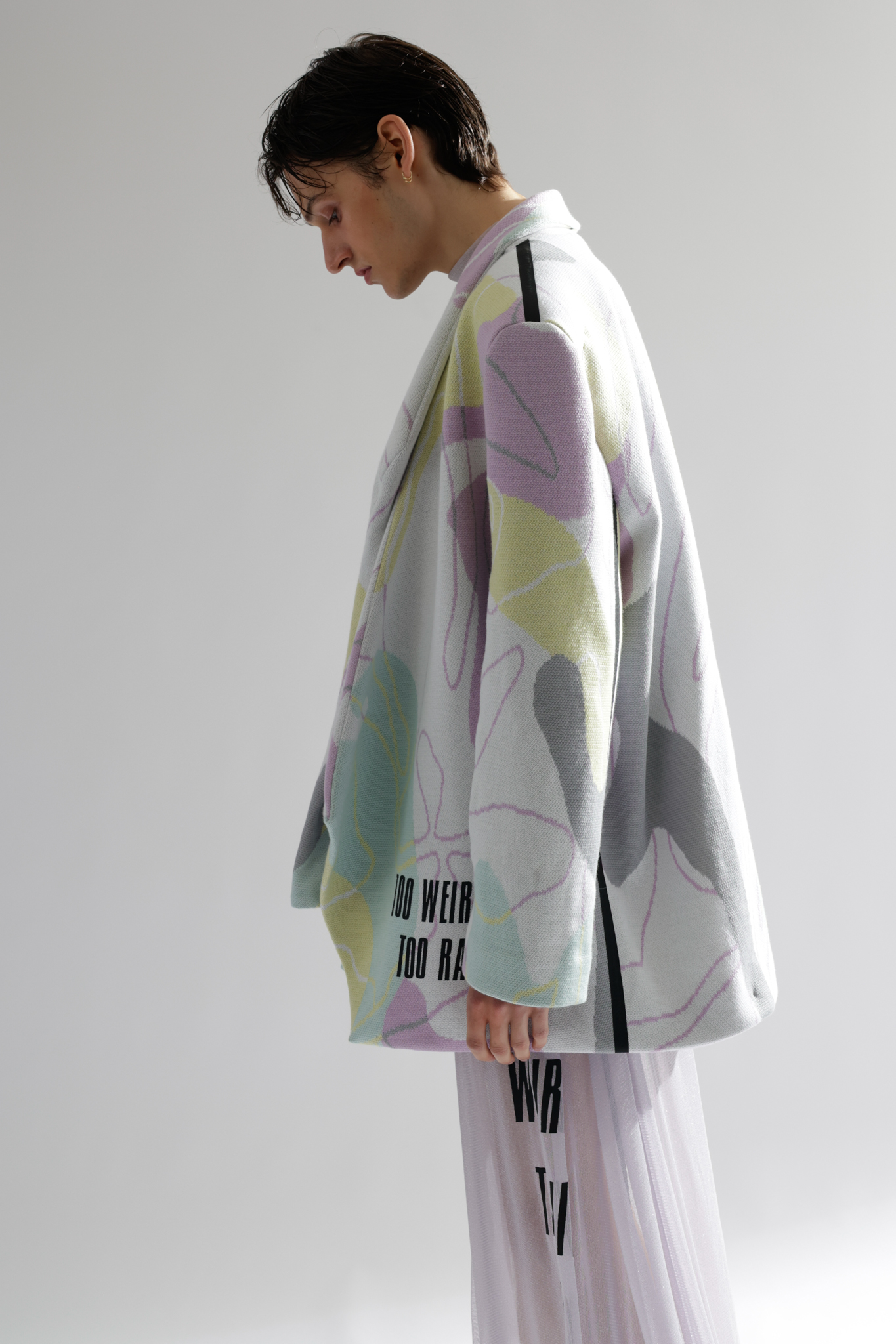 Do you remember the 1998 film “Fear and Loathing in Las Vegas” by Terry Gilliam? A film that deals with excessive drug use and the constant pressure to be present and active. It leaves me with a feeling of being overstrained, and between the lines, I can see the parallels with the post-pandemic FoMo syndrome “The Fear of Missing Out” or constant worry that somewhere else might be better than where you are. The basic human need for companionship is intertwined with a fear of being among people again and coupled with the pressure of having to make up lost time. A spongy feeling similar to when the days mixed into a single mush during the hard lockdown. I drew inspiration for the design language from this conglomerate. During the design process I was very happy to work with several local artists. The photoshoot was a collaboration between fashion design and fashion journalism students from “AMD, Akademie Mode Und Design, Hamburg”.
