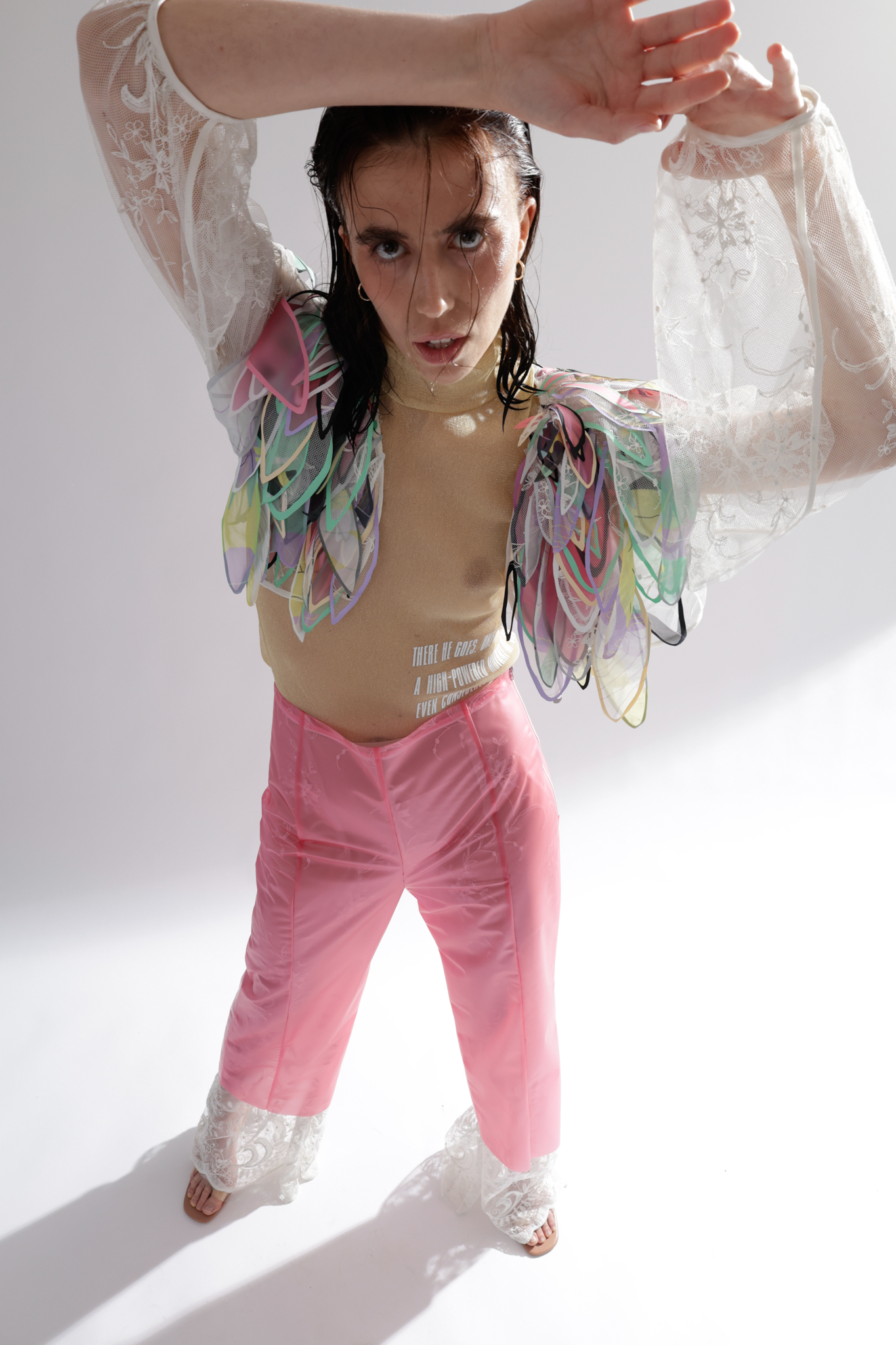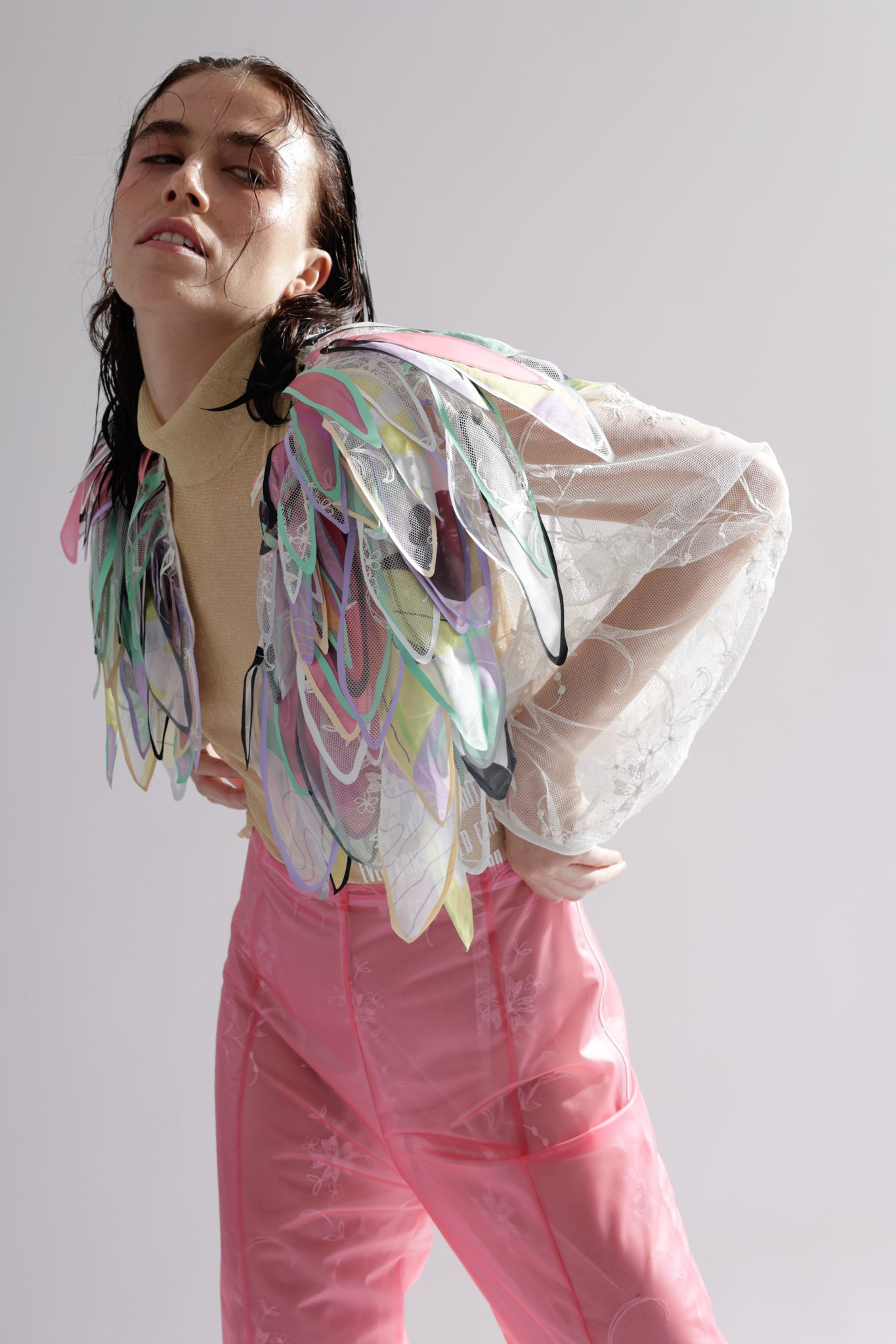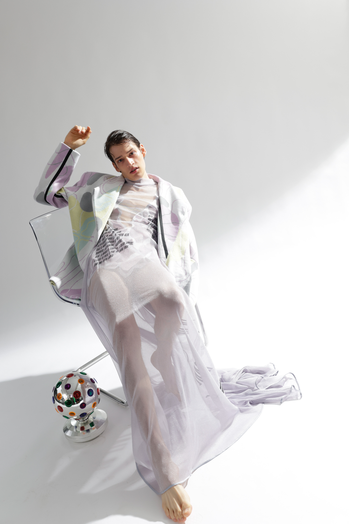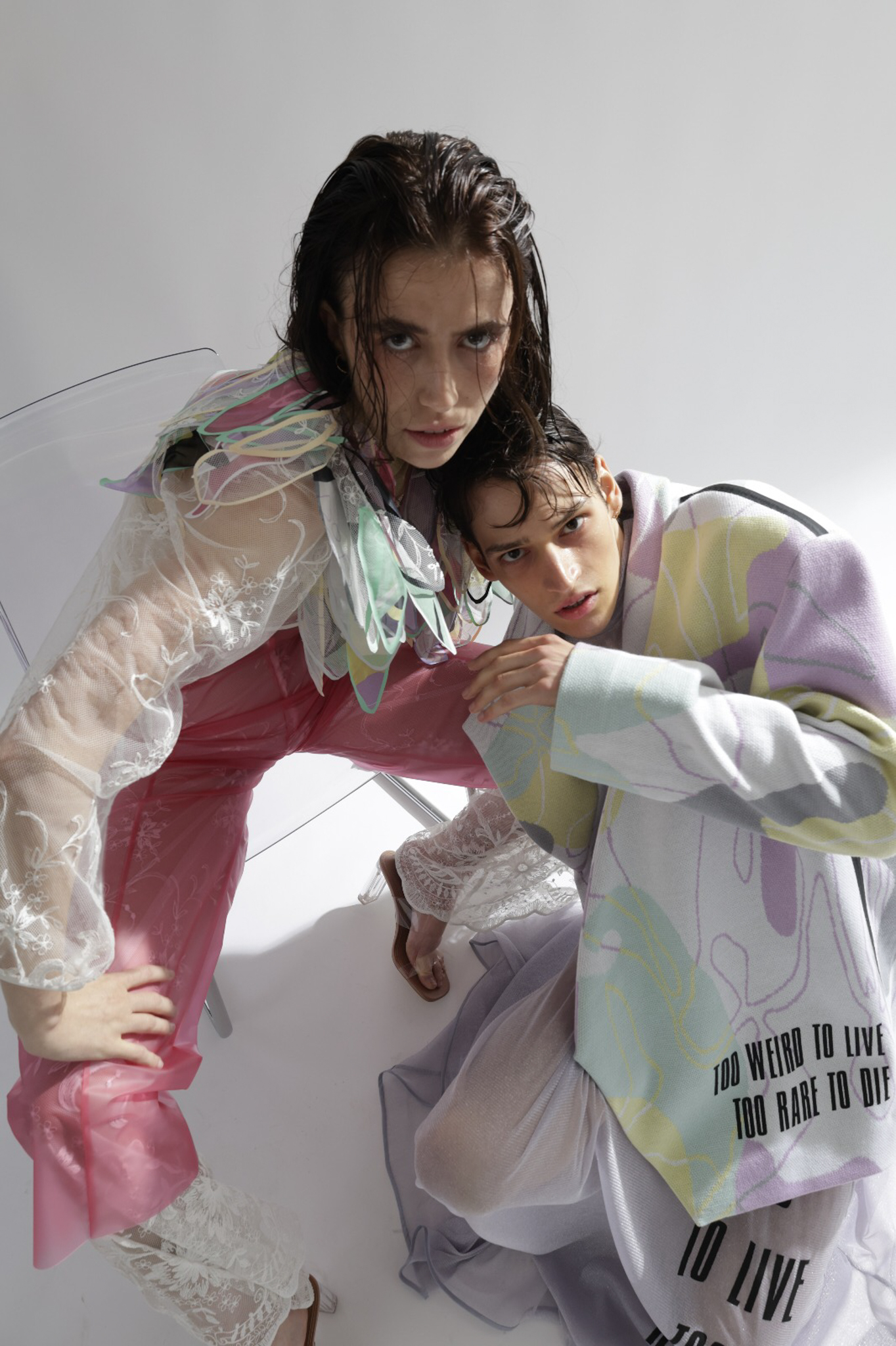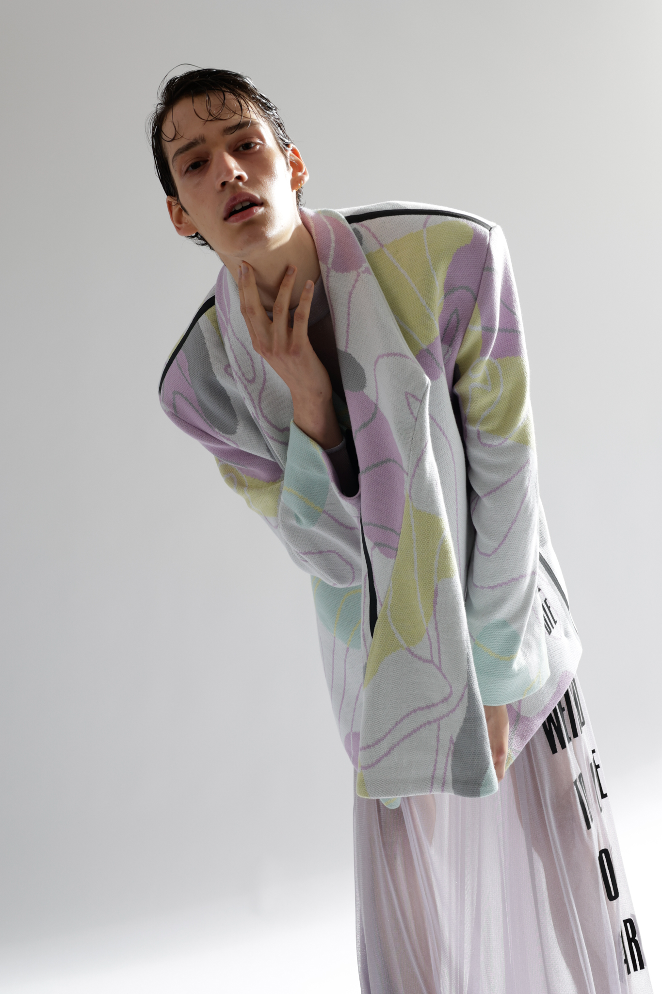 Do you remember the 1998 film “Fear and Loathing in Las Vegas” by Terry Gilliam? A film that deals with excessive drug use and the constant pressure to be present and active. It leaves me with a feeling of being overstrained, and between the lines, I can see the parallels with the post-pandemic FoMo syndrome “The Fear of Missing Out” or constant worry that somewhere else might be better than where you are. The basic human need for companionship is intertwined with a fear of being among people again and coupled with the pressure of having to make up lost time. A spongy feeling similar to when the days mixed into a single mush during the hard lockdown. I drew inspiration for the design language from this conglomerate. During the design process I was very happy to work with several local artists. The photoshoot was a collaboration between fashion design and fashion journalism students from “AMD, Akademie Mode Und Design, Hamburg”.