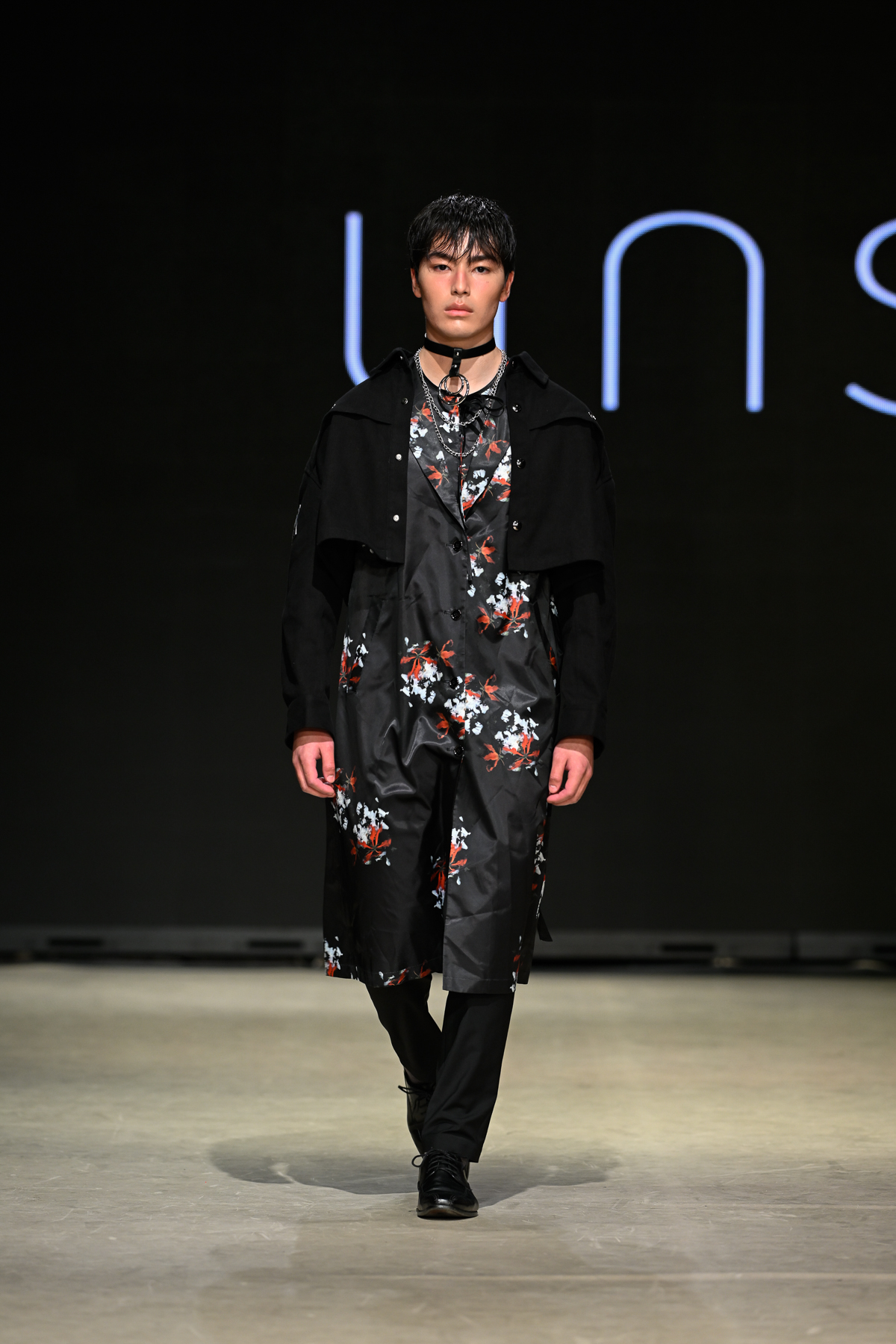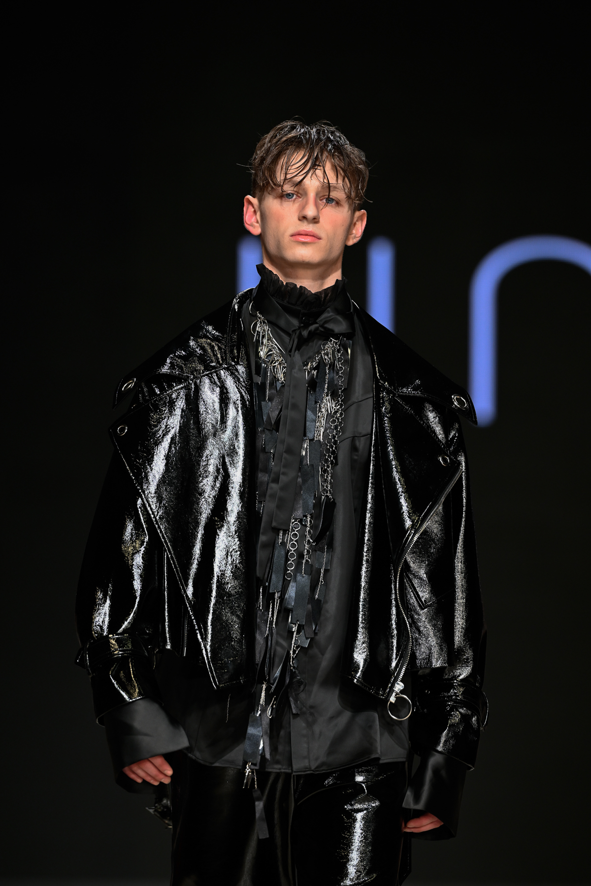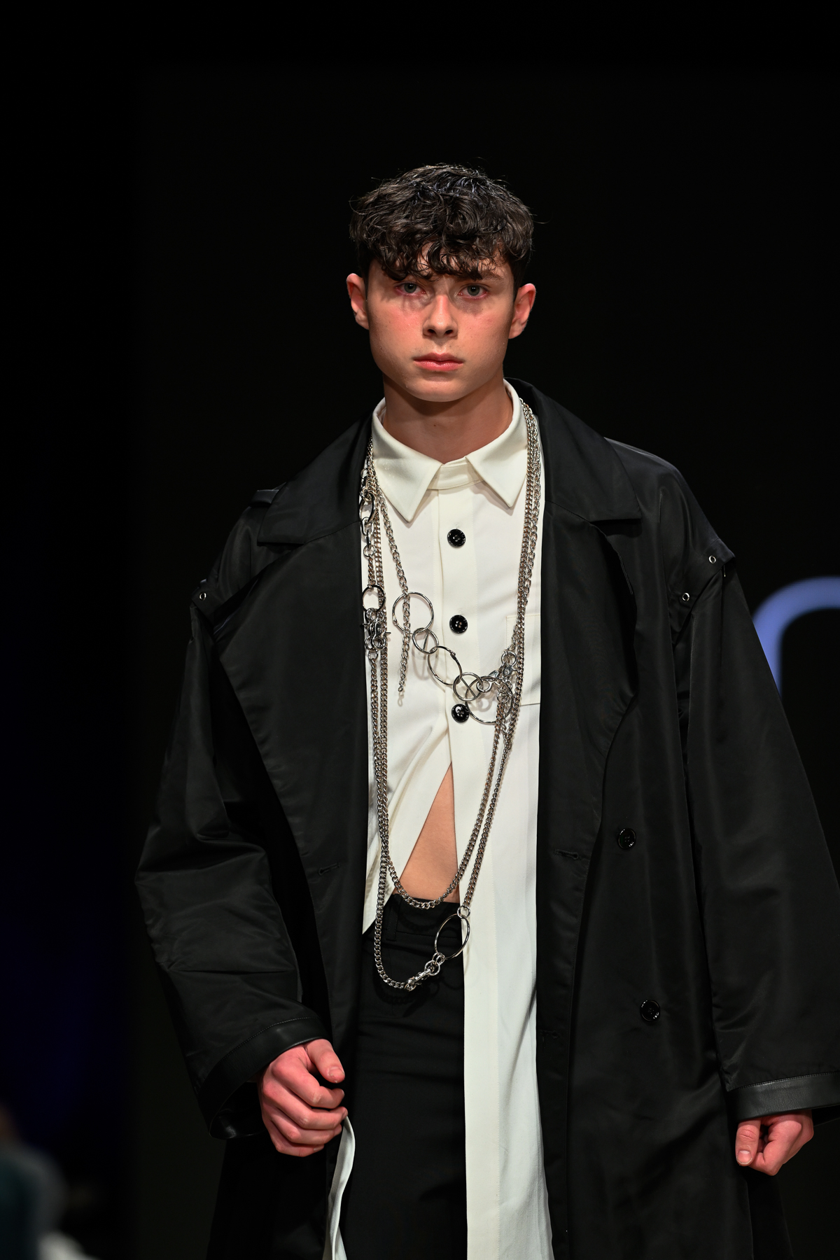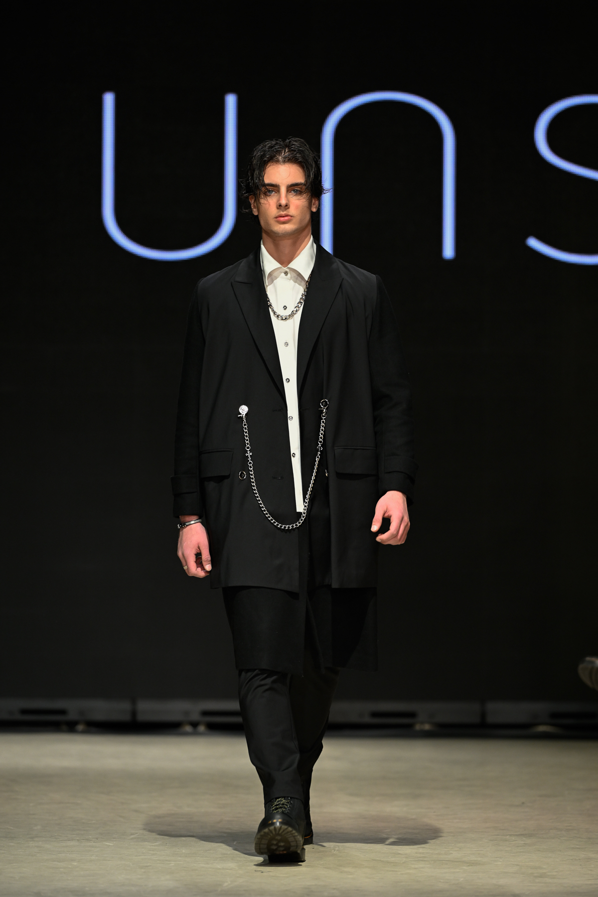Coming all the way from Tokyo, Unserten, an avant-garde menswear brand founded in 2020, had made a huge and positive impact at Vancouver Fashion Week on Day 3 of the event. Within a multitude of monochromatic pieces, the collection’s strong presence was also seen in the crowd, Riverdale’s Drew Ray Tanner who wore a magnificent coat. The pieces embodied gothic simplicity, gender-neutral style and lines and a mix of soft ribbons and silver metallic chains.