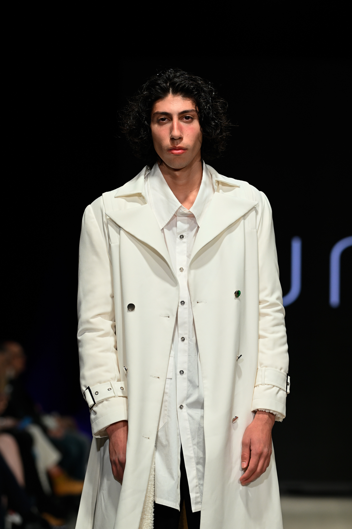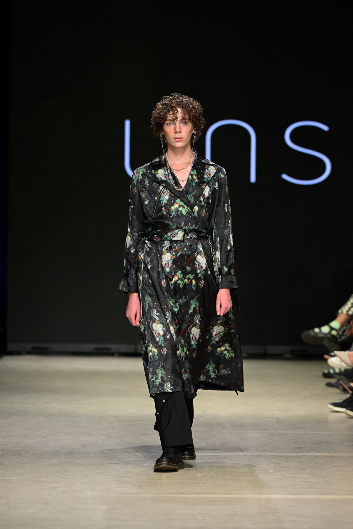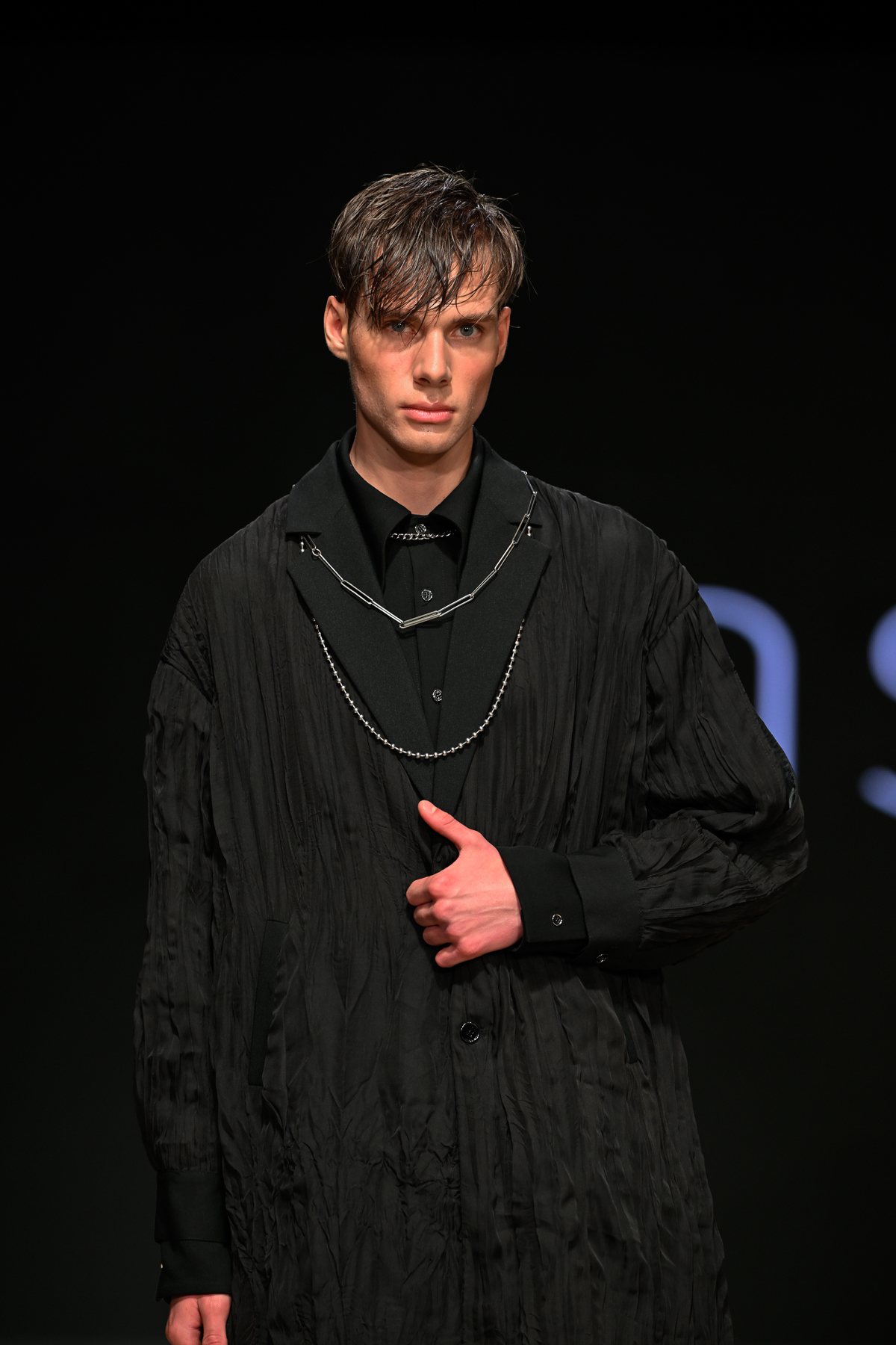 Coming all the way from Tokyo, Unserten, an avant-garde menswear brand founded in 2020, had made a huge and positive impact at Vancouver Fashion Week on Day 3 of the event. Within a multitude of monochromatic pieces, the collection’s strong presence was also seen in the crowd, Riverdale’s Drew Ray Tanner who wore a magnificent coat. The pieces embodied gothic simplicity, gender-neutral style and lines and a mix of soft ribbons and silver metallic chains.