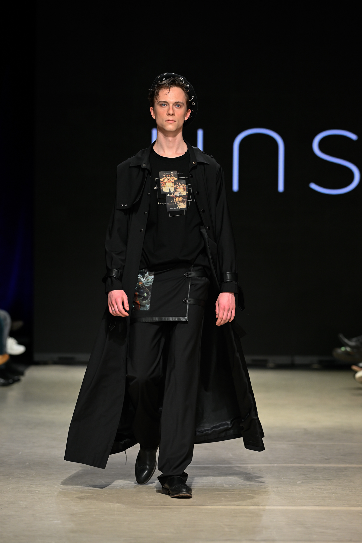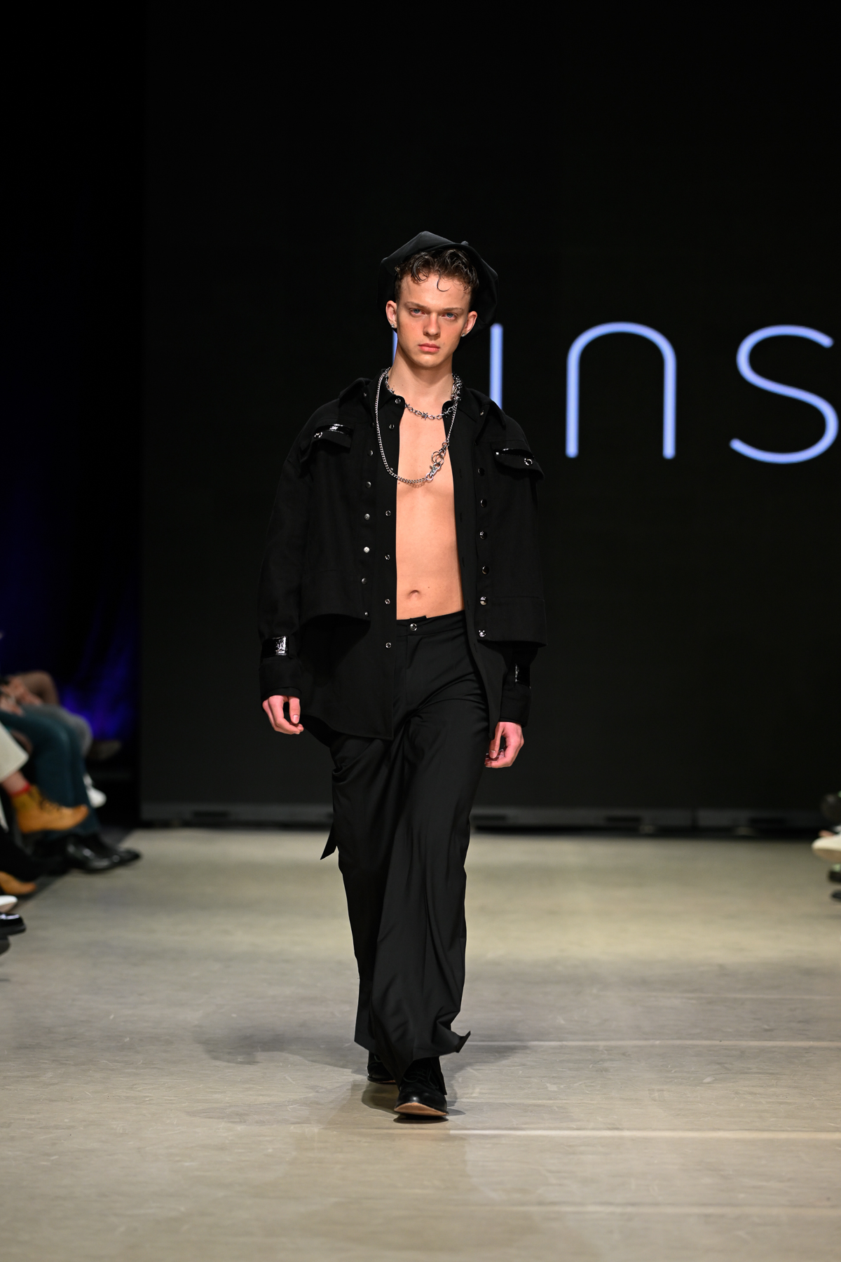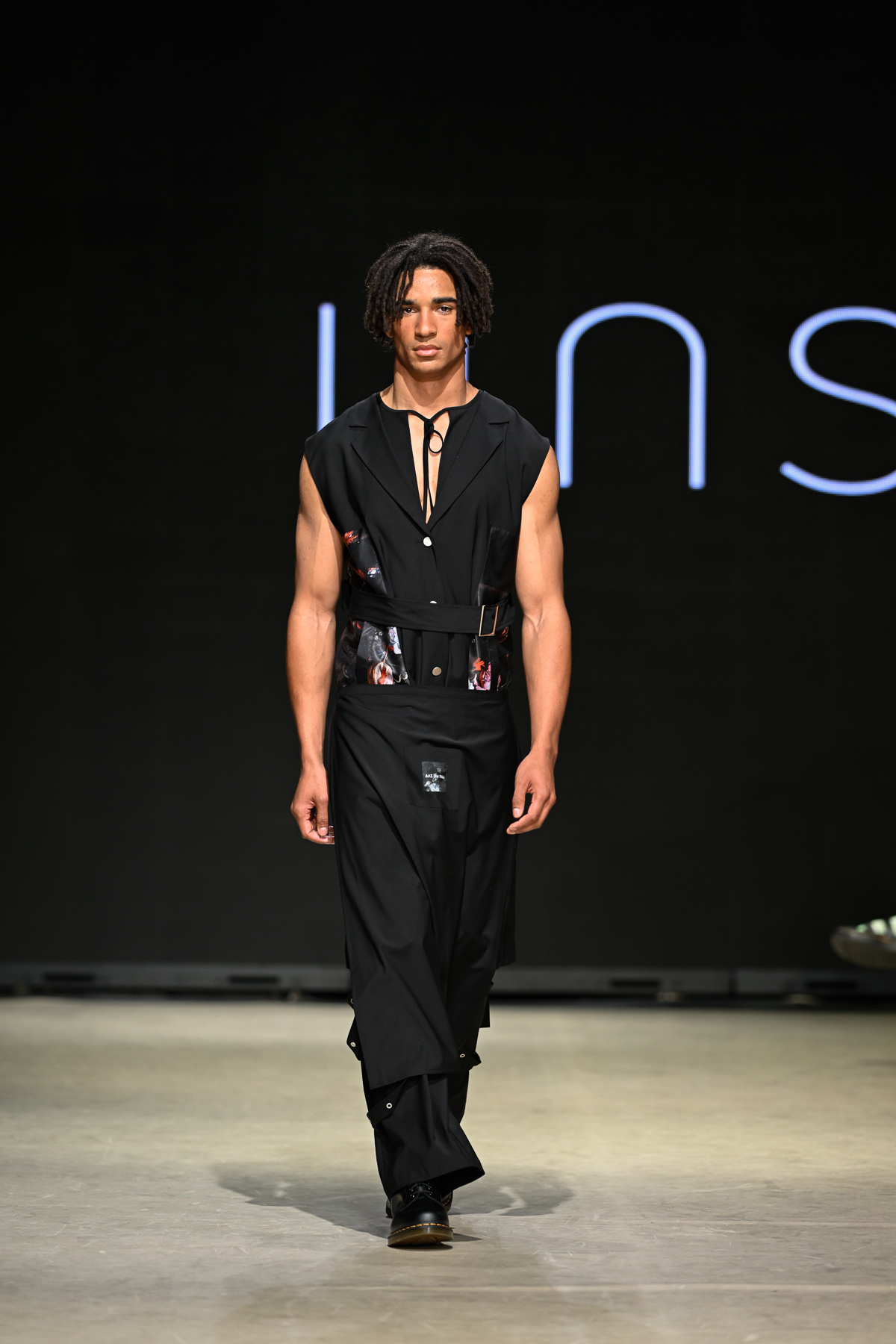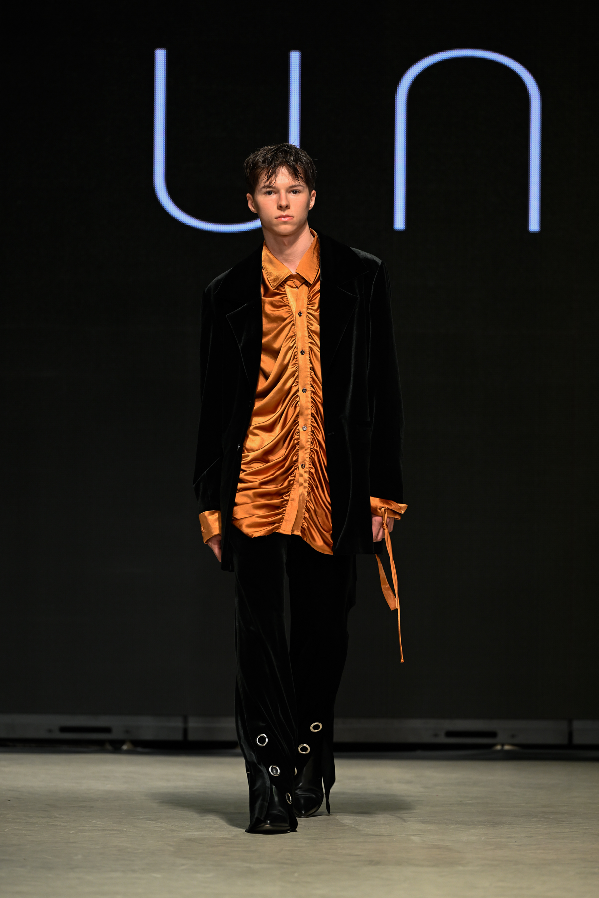 Coming all the way from Tokyo, Unserten, an avant-garde menswear brand founded in 2020, had made a huge and positive impact at Vancouver Fashion Week on Day 3 of the event. Within a multitude of monochromatic pieces, the collection’s strong presence was also seen in the crowd, Riverdale’s Drew Ray Tanner who wore a magnificent coat. The pieces embodied gothic simplicity, gender-neutral style and lines and a mix of soft ribbons and silver metallic chains.