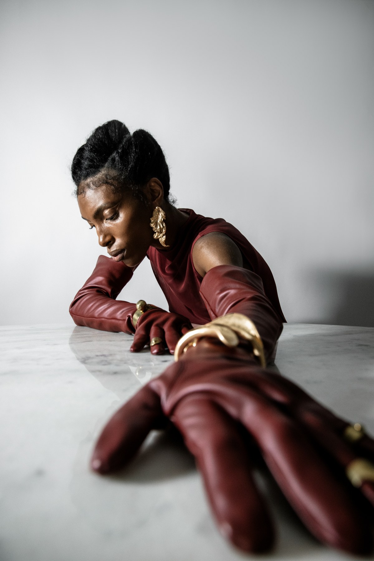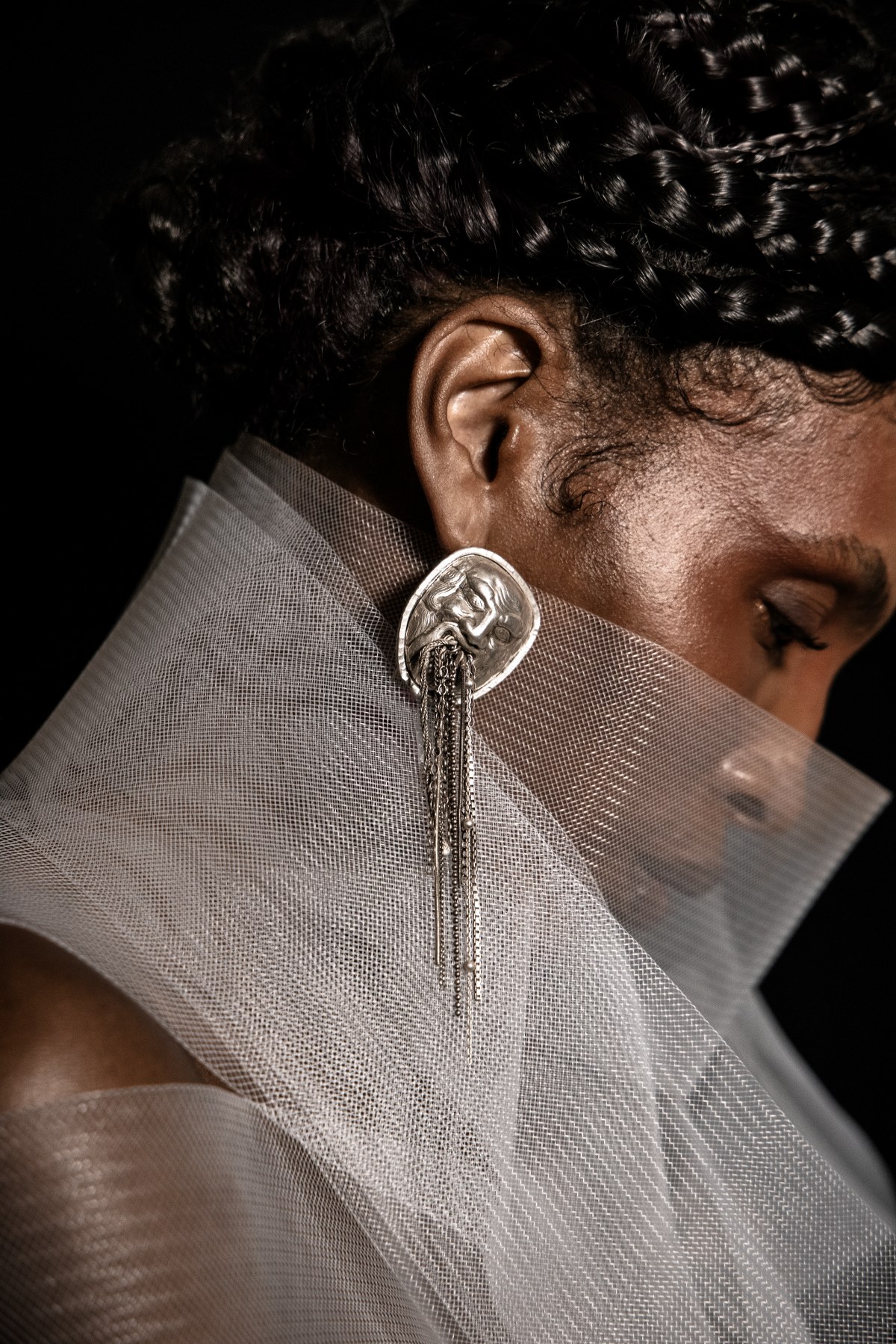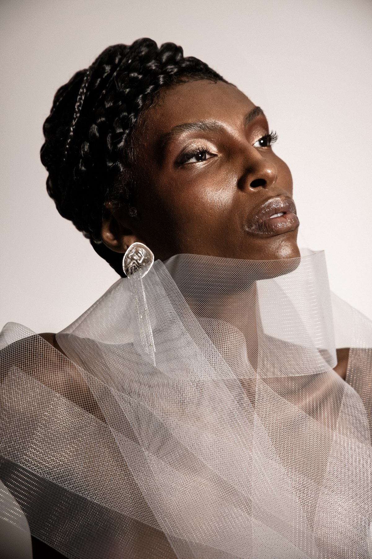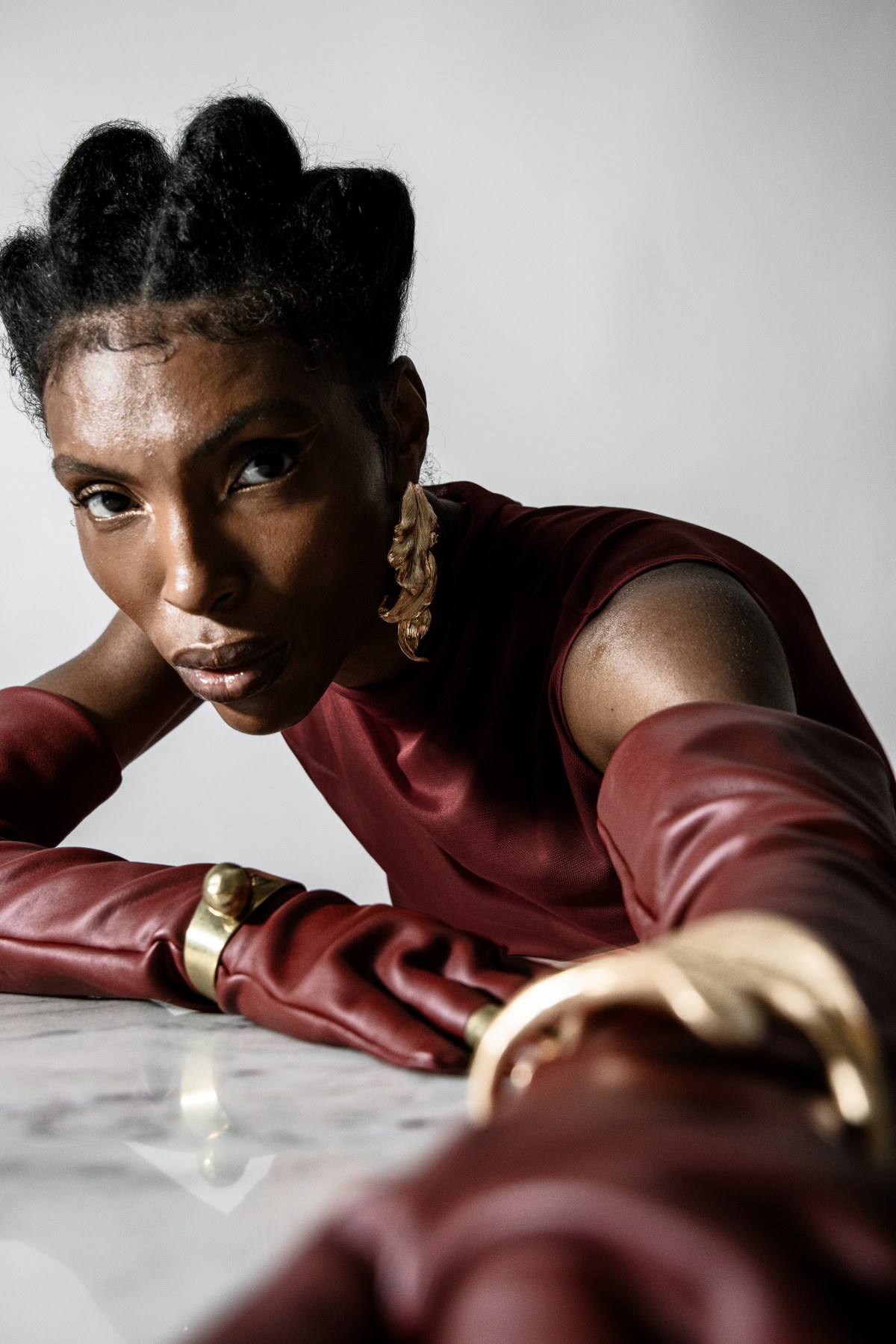Wardrobe: Look 1: Jewelry – Agustina Ros for Galeria Alice Floriano @agustinaros_glassartist @galeria_alicefloriano, Body – Stylist Collection // Look 2: Top – Humans and Aliens @humans_and_aliens, Gloves – Moun Off @moun_off, Pantyhose – Calzedonia @calzedonia, Earrings – Stylist Collection, Bracelet and Rings – Brass Oficina para Andaime @brassoficina @andaimepoa // Look 3: Crinole Top – Adriana Kavietz @adrianakavietz, Brooch – Geraldine Fenn @geraldinefenn for Galeria Alice Floriano @galeria_alicefloriano, Braids- Hd Make Hair @hdmakehair