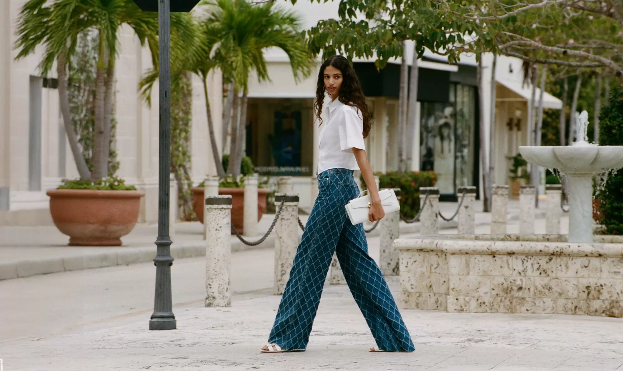 Accessories play a central role in the Spring 2025 collection. Key pieces include The Veronica Beard Boxy Shoulder Bag, a structured, timeless design, and the Veronica Beard Stash Bag, a practical yet stylish option for on-the-go wear. The Tia Jelly Heel, a sophisticated update on the classic jelly shoe, and the Rivera sneaker, available in multiple colorways, designed to complement the entire ready-to-wear collection.