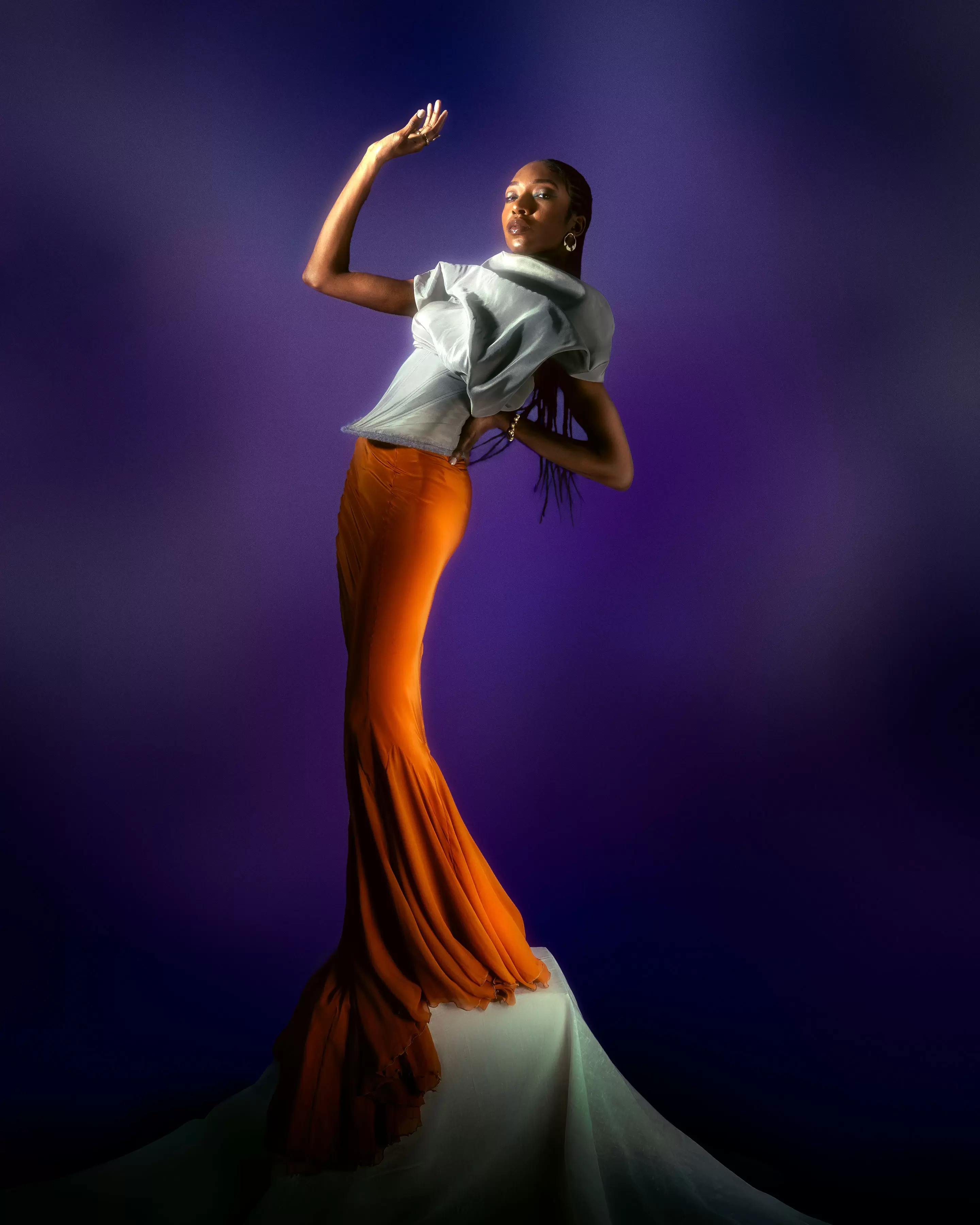 Fashion: Gray corset top, orange skirt and black skirt by Abel Martirosyan @notyourcouture